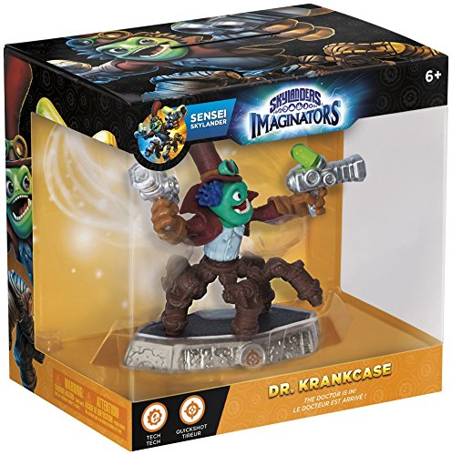 ma i suoi successi nel campo dell'ingegneria sono leggendari. Il suo segreto? Una formula modificata di melma verde luccicante, in grado di animare e rendere malvagi gli oggetti di legno. Questo insolito talento l'ha reso prezioso per i Doom Raiders, che hanno sempre bisogno di malvagie creature di legno per i loro diabolici piani. Il dottor Krankcase è stato inoltre un'importante fonte di ispirazione per Kaos, che ha scoperto come dare vita alle sue creature di legno, i Wilikin, dopo aver letto degli exploit del dottore nel catalogo Servi & Lacché. Di lui Kaos apprezzava inoltre l'aspirazione al dominio del mondo, l'interesse per il Fato e la passione per i sottaceti. Dopo che Krankcase venne catturato dal Trap Team, Eon lo mise di fronte a una scelta: tornare dietro le sbarre in una nuova Prigione Scrocchianembi o diventare uno Skylander Sensei, insegnando a una nuova generazione di Imaginators le sue formidabili tecniche di combattimento e a tenersi lontani dal crimine. Prima, però, come segno del suo ravvedimento, il dottore dovette riorganizzare la disposizione di tutti i volumi della biblioteca dell’Accademia, un lavoro che lo tenne impegnato per quasi due anni e che ne mise a dura prova la forza di volontà... nonché la conoscenza dell’alfabeto. Ora che è diventato maestro della classe Pistolero, Krankcase usa le tecniche che ha appreso per insegnare agli Imaginators l'ABC del tiro.