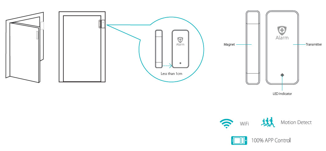- +Alarm Control Center - basta azionarlo allontanando il sensore dal corpo centrale e il led si accenderà per qualche secondo;