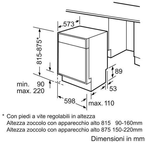 | Dimensioni del compartimento di installazione | 600 x 573 x 815 mm |