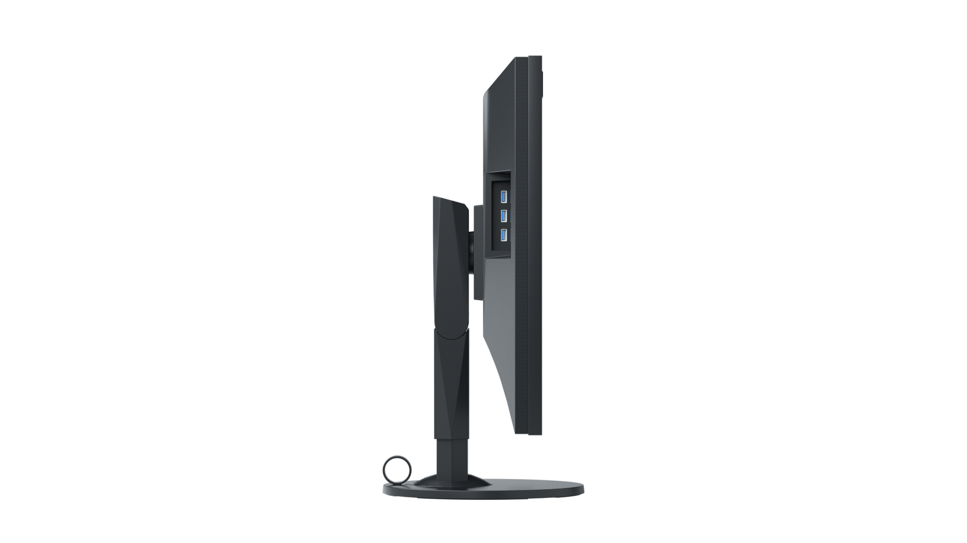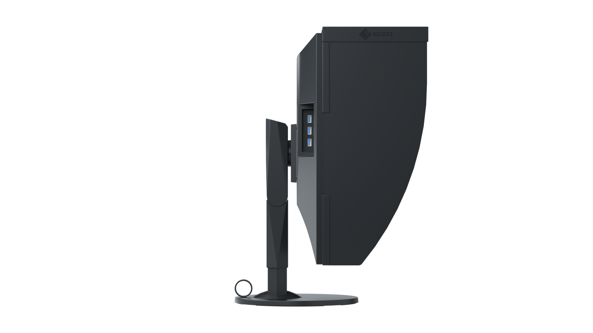 Il piedistallo ergonomico del monitor CG318-4K è inclinabile, ruotabile e regolabile in altezza senza sforzo per una visione confortevole e una postura comoda. Lo schermo si può abbassare in modo scorrevole fino alla base del supporto.