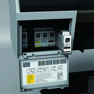 Qualità elevata del colore: ottieni una delle più ampie gamme cromatiche disponibili sul mercato e gradazioni sempre uniformi. Testina di stampa TFP: una migliore qualità delle gocce e immagini nitide e chiare, per stampe con qualità da laboratorio. Set di inchiostri UltraChrome K3 con Vivid Magenta: per una più estesa gamma di toni di grigio dall'aspetto naturale. Tre densità di nero - Nero Photo standard o Nero Matte (con selezione automatica in base al supporto), più Nero Light e Nero Light Light - creano eccellenti stampe in bianco e nero con un elevato rapporto di contrasto, sfumature perfette e un migliore bilanciamento dei grigi senza dominanza di colore. Colori perfetti: la combinazione di inchiostri neri fa sì che le stampe siano prive di effetto bronzing, con una superficie dall'aspetto uniforme sia nelle aree luminose che in quelle scure. Anche l'effetto del metamerismo è ridotto, in modo che i toni di grigio siano uniformi in qualsiasi condizione di luce. Aumento della produttività: il sistema Automatic Droplet Detection di Epson ripara gli ugelli bloccati senza richiedere interventi di manutenzione. La stampante può inoltre utilizzare contemporaneamente gli inchiostri neri Photo e Matte. Una taglierina rotante integrata taglia le stampe in modo veloce e netto. La carta in rotolo viene cambiata facilmente in pochi secondi. SpectroProofer in linea opzionale: la stessa precisione del colore anche su supporti diversi, con una misurazione rapida delle strisce di controllo e delle tabelle dei colori nella creazione dei profili ICC (International Color Consortium) e dei risultati nella verifica della qualità di stampa.