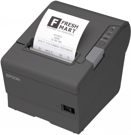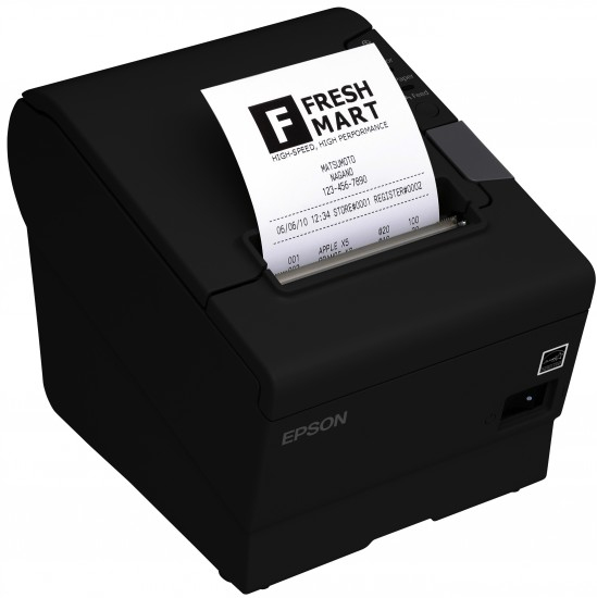 Epson TM-T88V (654A0). Tecnologia di stampa: Termico, Tipo: Stampante POS, Risoluzione massima: 180 x 180 DPI. Diametro massimo rullo: 8,3 cm, Larghezza carta supportata: 80 mm. Tecnologia di connessione: Cablato, Connettore USB: USB di tipo B, Interfaccia standard: Ethernet, USB 2.0. Livello di pressione acustica (stampa): 55 dB, Tempo medio tra guasti (MTBF): 360000 h, Paese di origine: Cina. Tipologia alimentazione: AC, Tensione di ingresso AC: 24 V