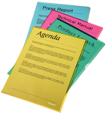 Esselte 54837. Formato: A4, Materiali: Polipropilene (PP), Colore del prodotto: Blu. Larghezza: 220 mm, Profondità: 1 mm, Altezza: 307 mm. Quantità per pacco: 100 pz