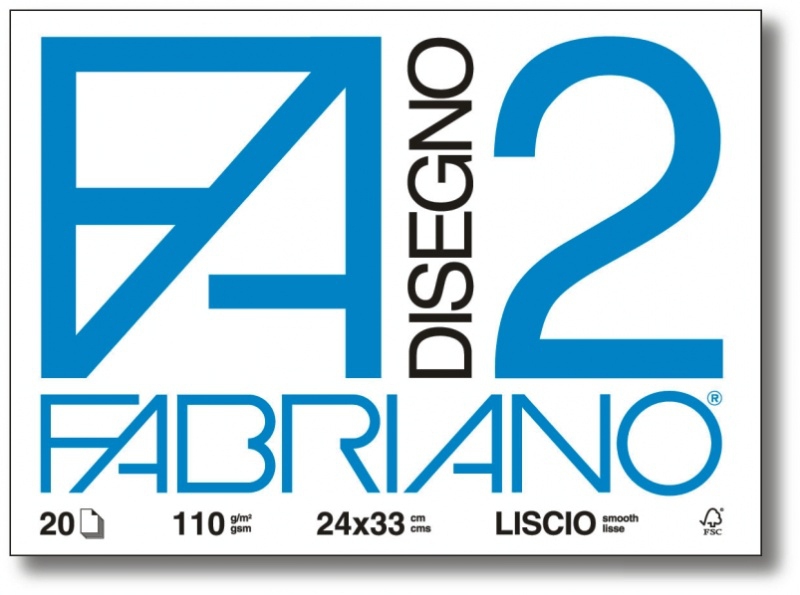 RUVIDA: per grafite morbida, carboncino, pastello. LISCIA: per matita, pastello, cera, pennarello, china. La filigrana riproduce il marchio ed il logotipo FABRIANO ed il numero 2.
