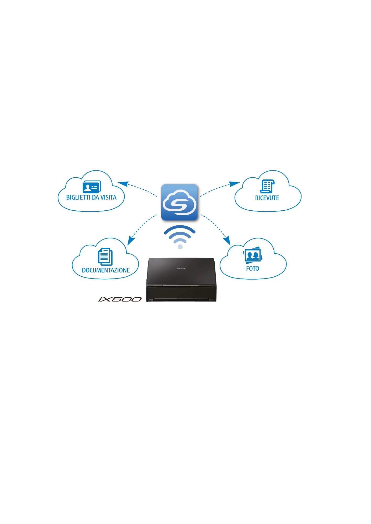 ScanSnap Cloud - trasferisce carta direttamente al suo cloud. Siete utenti affezioni a servizi cloud come ad esempio Dropbox, Google Drive, Evernote o simili? ScanSnap è la rampa immediata per documenti, biglietti da visita, ricevute e foto. È sufficiente eseguire una scansione e ScanSnap Cloud identificherà il tipo di contenuto e lo invierà al servizio cloud desiderato. Non è necessario alcun PC. Per informazioni visita www.fujitsu.com/uk/microsites/scansnapcloud/europe/