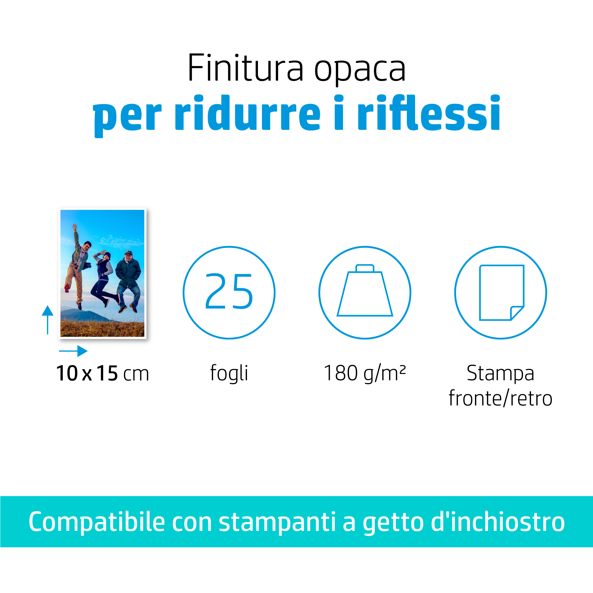 HP Carta fotografica opaca, 180 g/m2, 10 x 15 cm (101 x 152 mm), 25 fogli