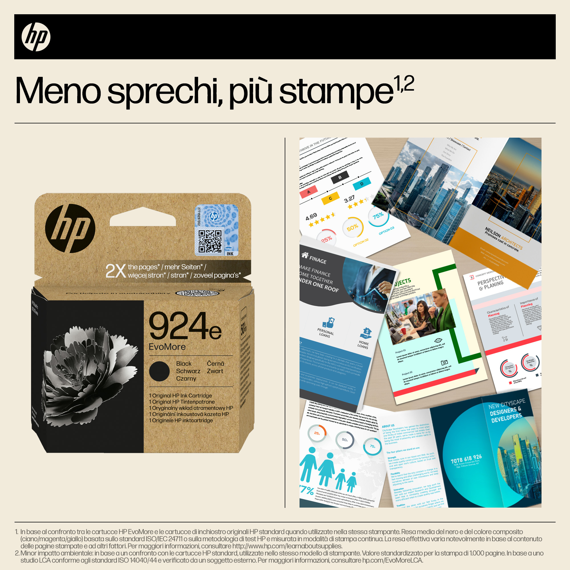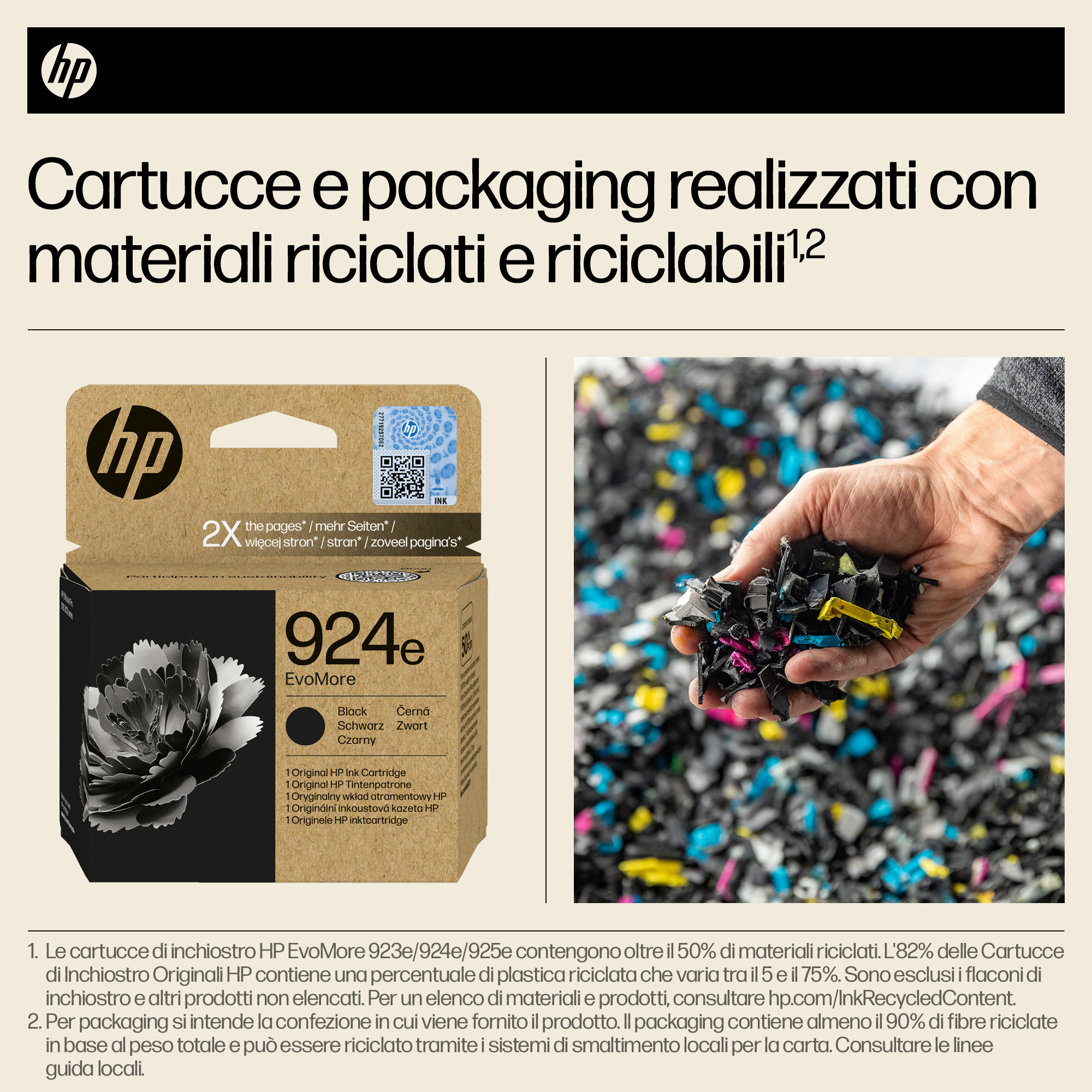 Le Cartucce di Inchiostro Originali HP EvoMore sono progettate per mettere la sostenibilità al primo posto e offriti le prestazioni e la qualità degli altri prodotti HP. Consentono infatti di stampare il doppio delle pagine[3] con meno emissioni di anidride carbonica[2] rispetto alle cartucce standard HP e sono estremamente facili da riciclare.[4]