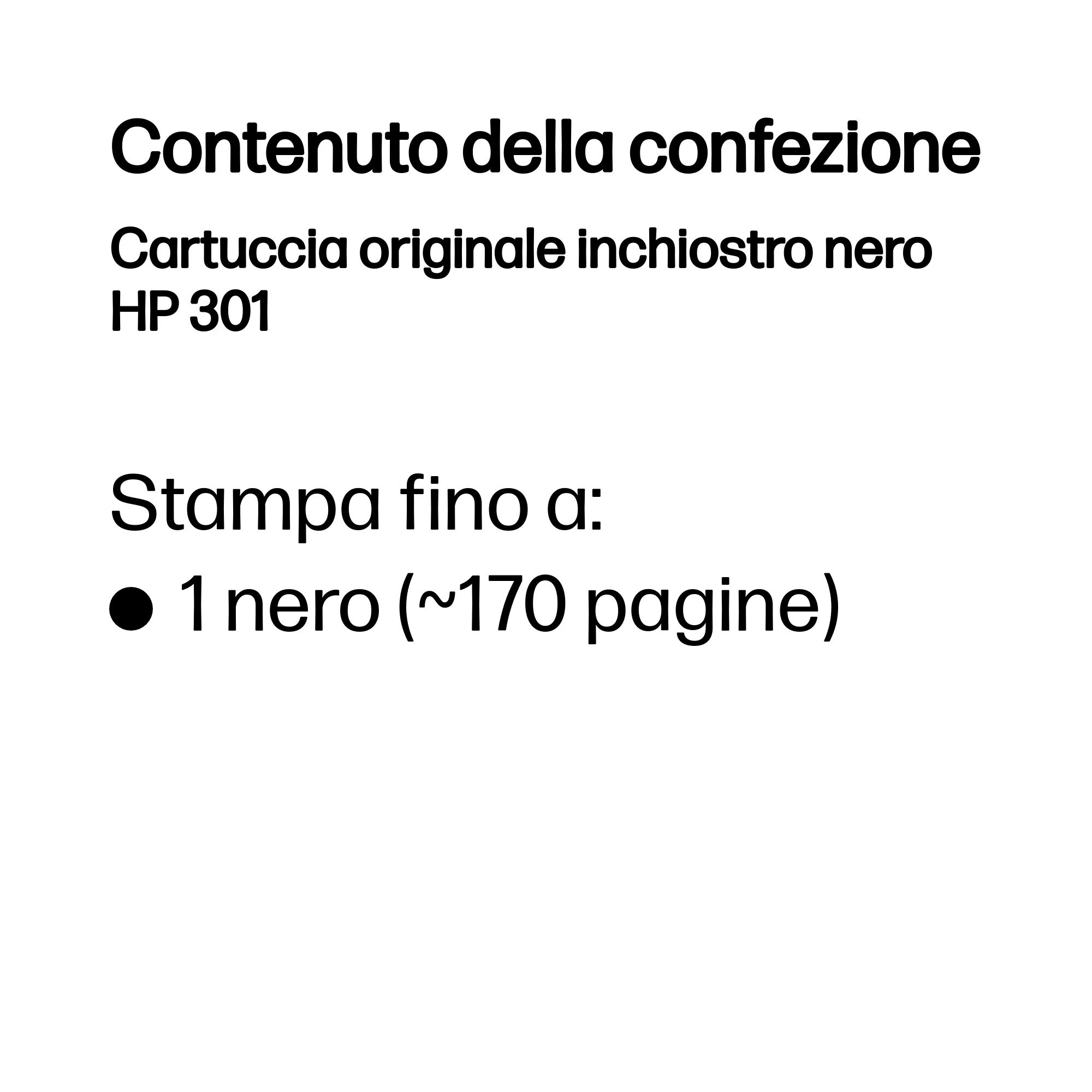 | Compatibilità | Le cartucce di inchiostro originali HP 301 funzionano con i seguenti dispositivi: HP DeskJet 2540 |