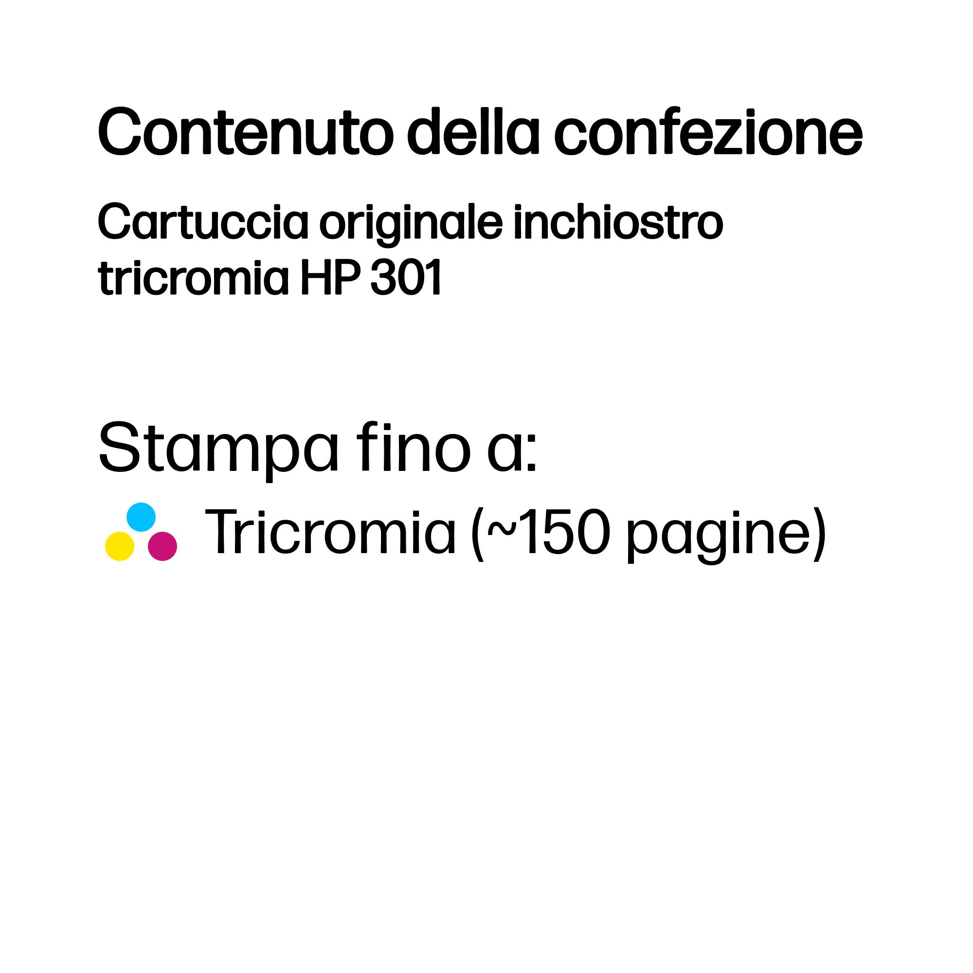 | Compatibilità | Le cartucce di inchiostro originali HP 301 funzionano con i seguenti dispositivi: HP DeskJet 2540 |