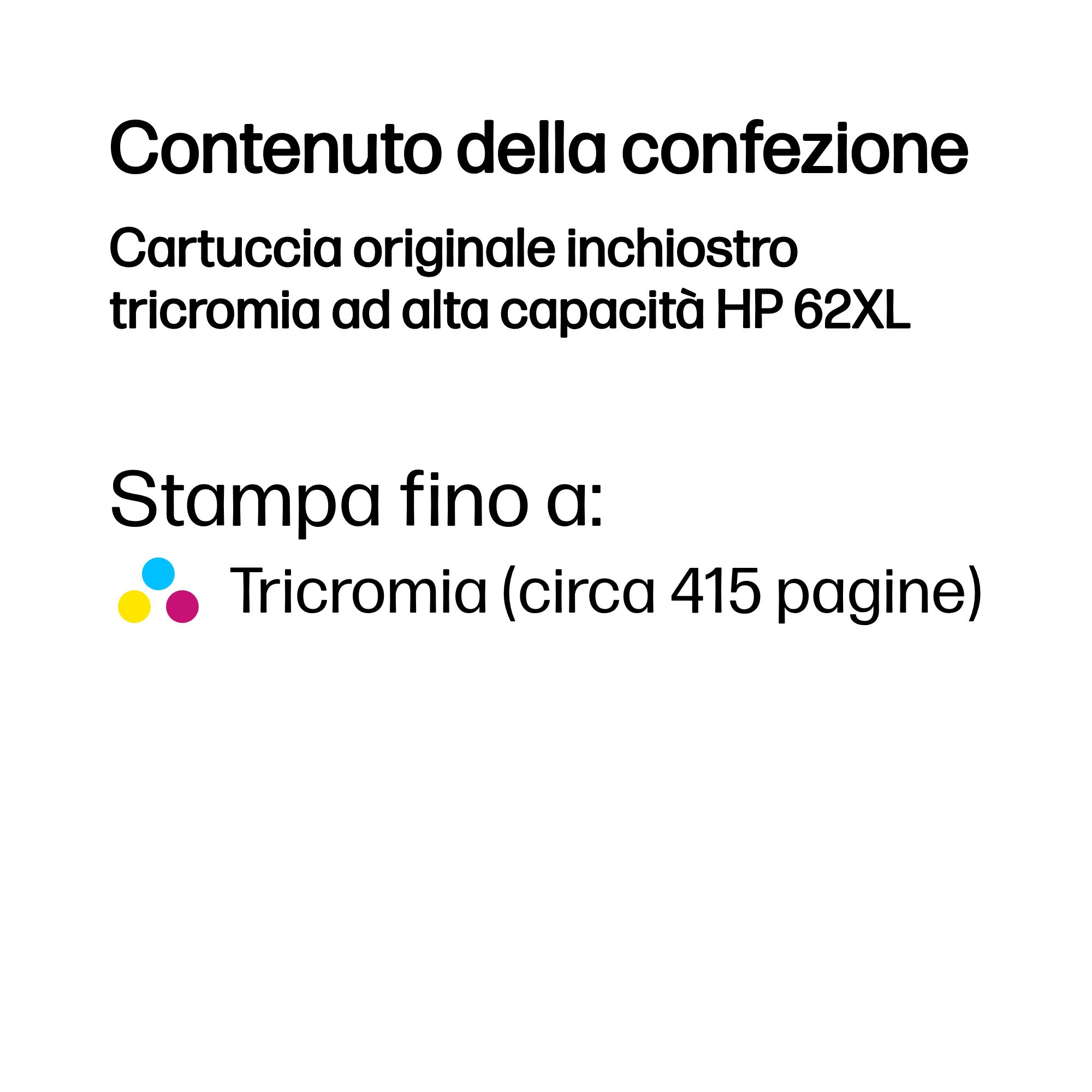 Cartuccia originale inchiostro tricromia ad alta capacità HP 62XL