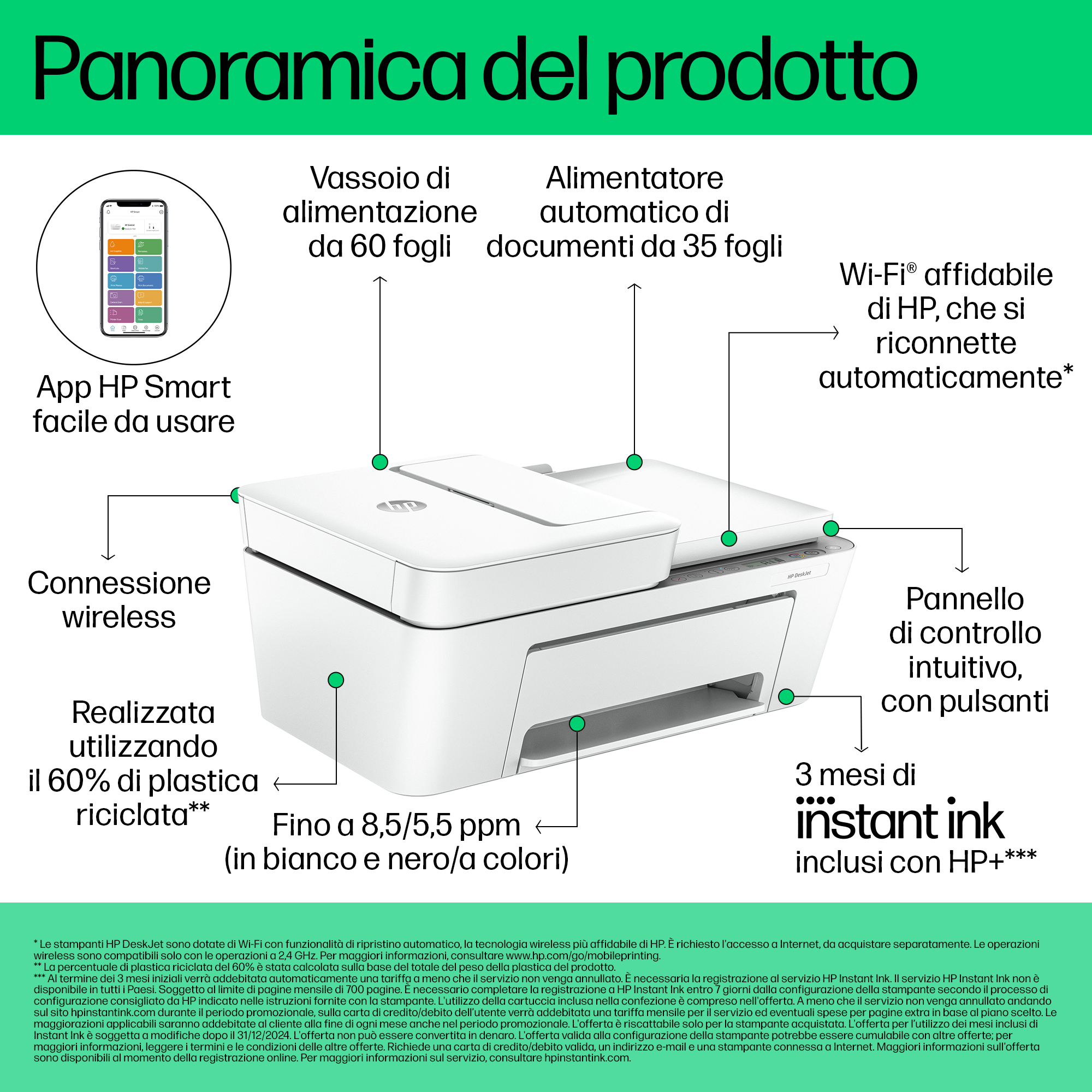 Risparmia fino al 70% sull'inchiostro con Instant Ink. Piani a partire da € 1,79 al mese per stampare 10 pagine.[5,6]