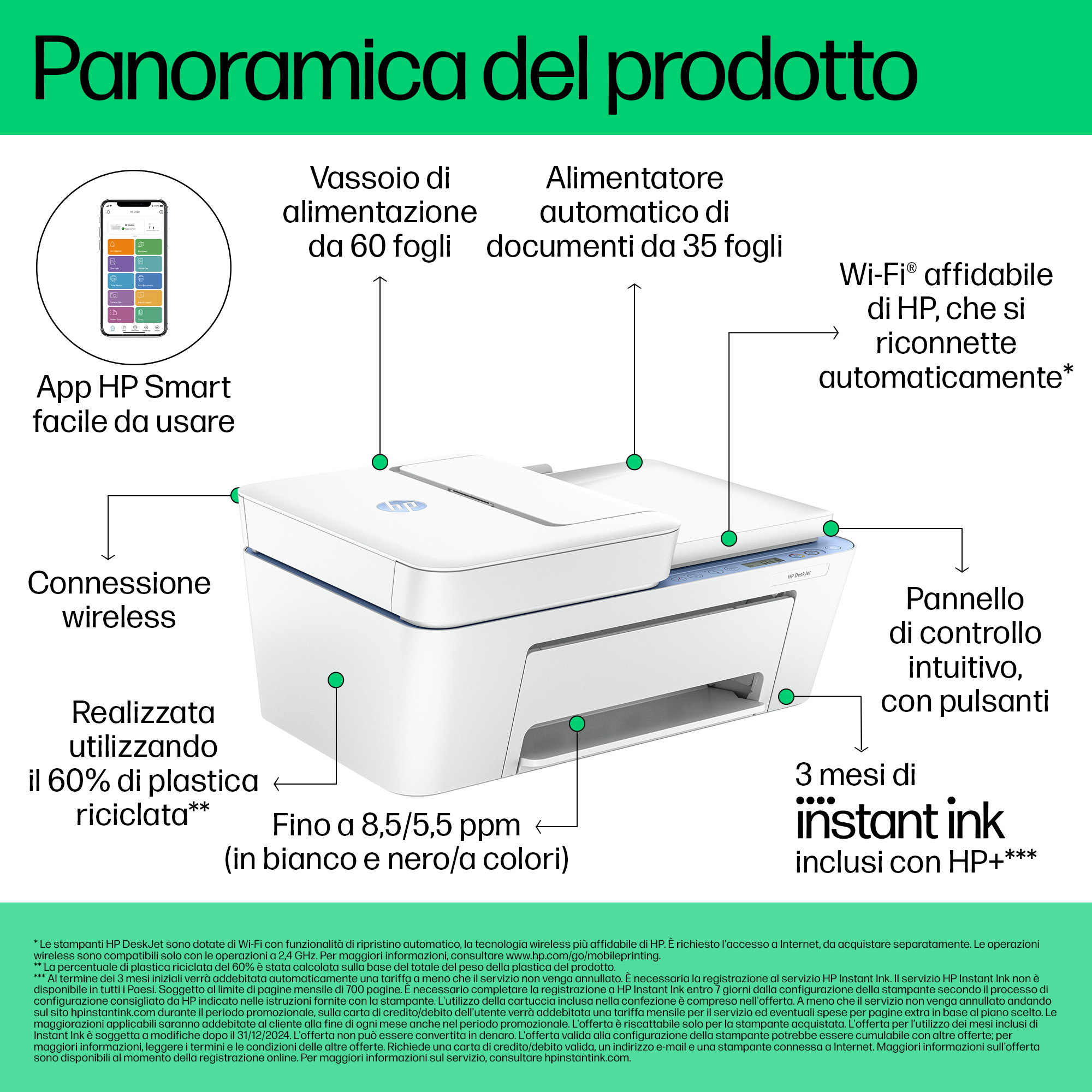 Stampante idonea a HP+. Scegli HP+ durante la procedura di configurazione della tua stampante per attivare tutti i vantaggi. HP+ richiede un account HP, una connessione a Internet continua e l'uso esclusivo delle cartucce di inchiostro Originali HP per tutta la durata di vita della stampante. Per maggiori informazioni consultare: http://www.hp.com/plus