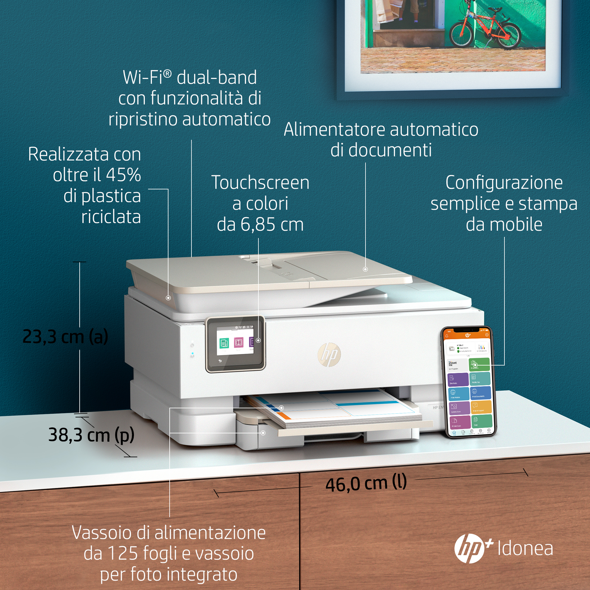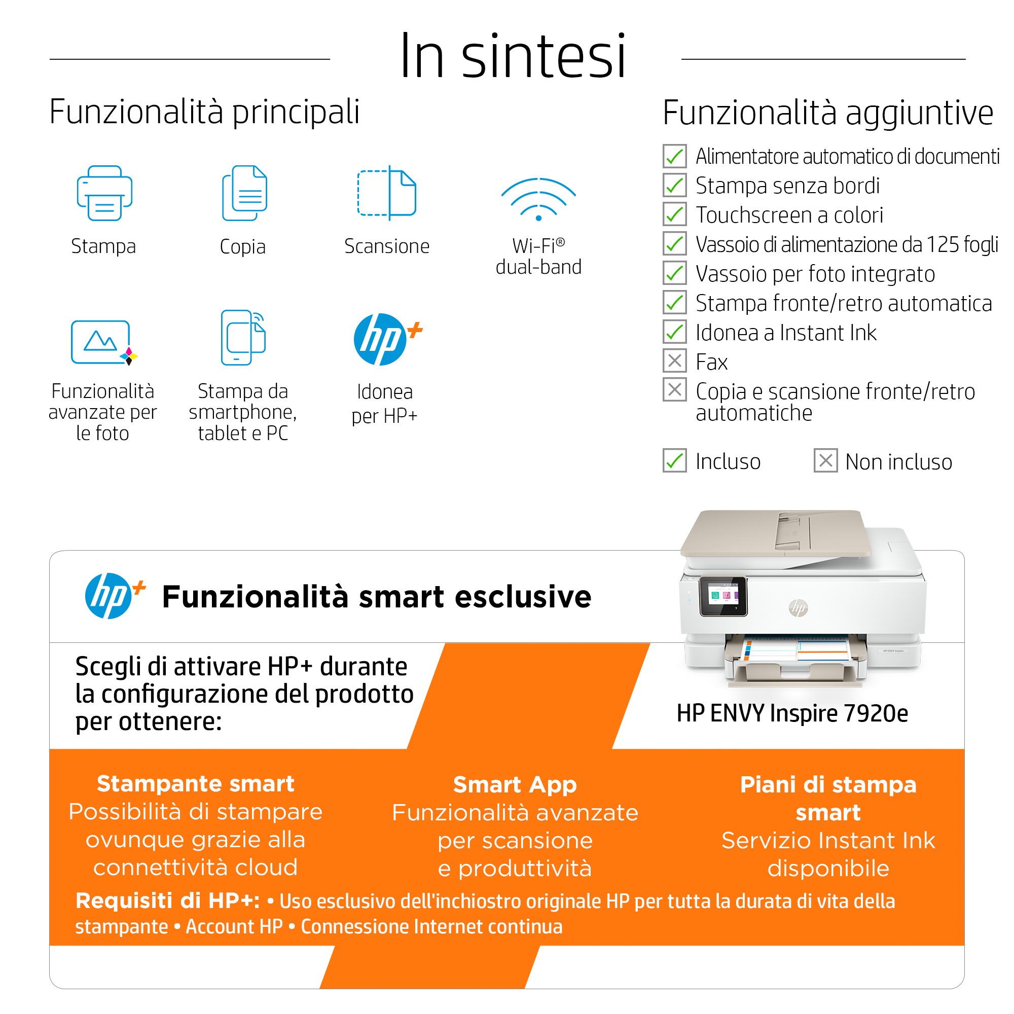 Stampante idonea a HP+. Scegli HP+ durante la procedura di configurazione della tua stampante per attivare tutti i vantaggi. HP+ richiede un account HP, una connessione a Internet continua e l'uso esclusivo delle cartucce di inchiostro Originali HP per tutta la durata di vita della stampante. Per maggiori informazioni consultare: http://www.hp.com/plus