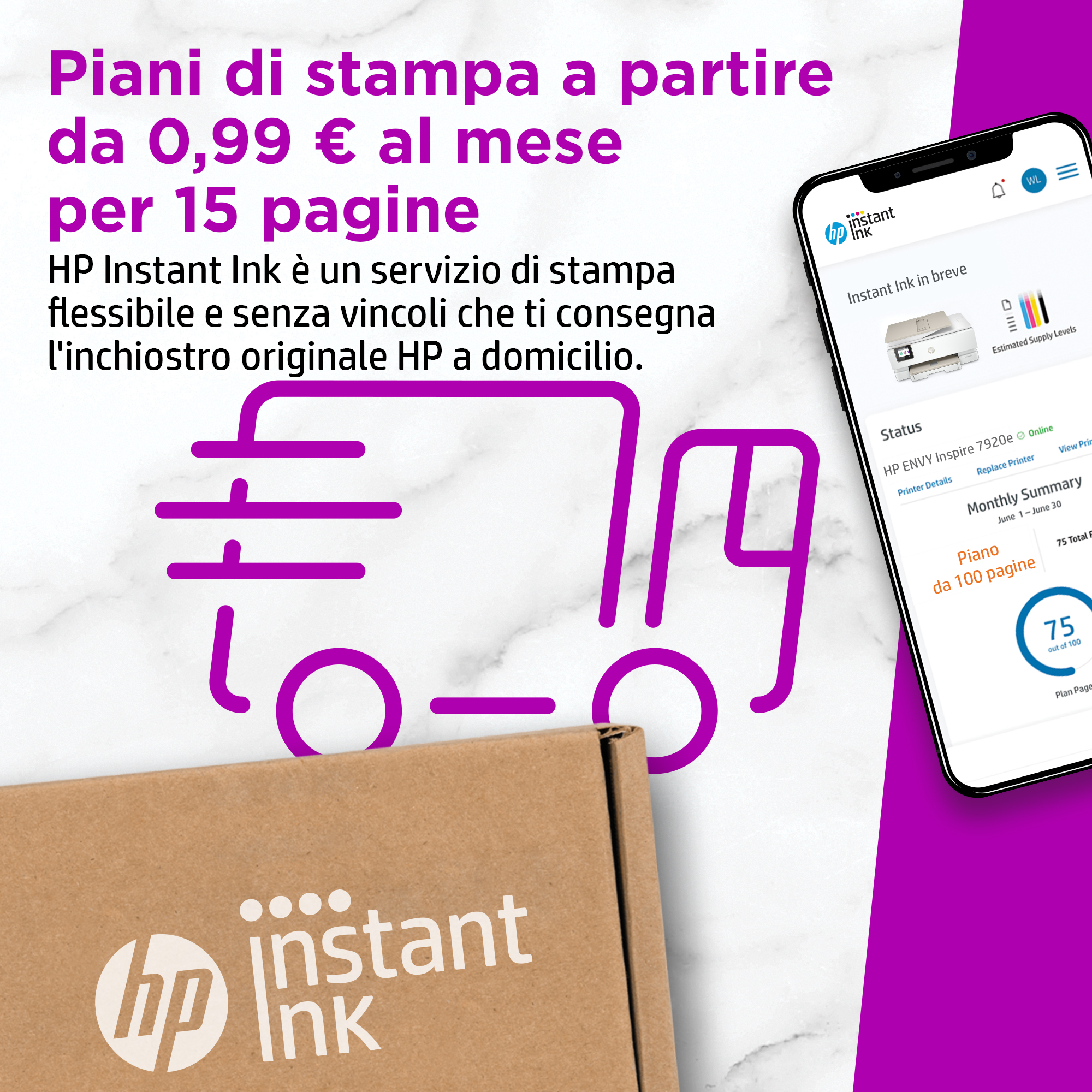 Primi 3 mesi di servizio Instant Ink inclusi[9]; al termine dei 3 mesi, sarà addebitato automaticamente il canone mensile, a meno che il servizio non venga disdetto.