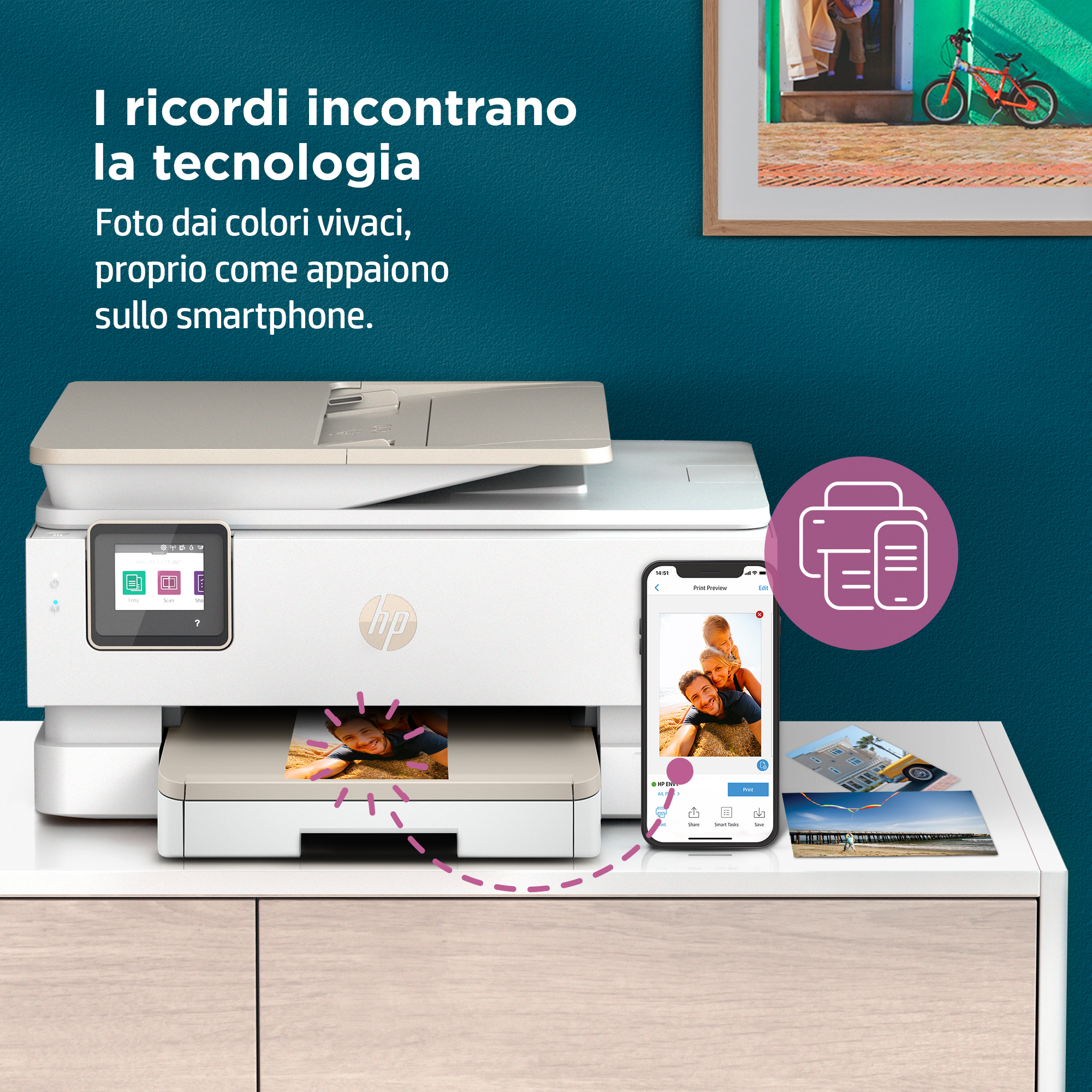 Stampante idonea a HP+. Scegli HP+ durante la procedura di configurazione della tua stampante per attivare tutti i vantaggi. HP+ richiede un account HP, una connessione a Internet continua e l'uso esclusivo delle cartucce di inchiostro Originali HP per tutta la durata di vita della stampante. Per maggiori informazioni consultare: http://www.hp.com/plus