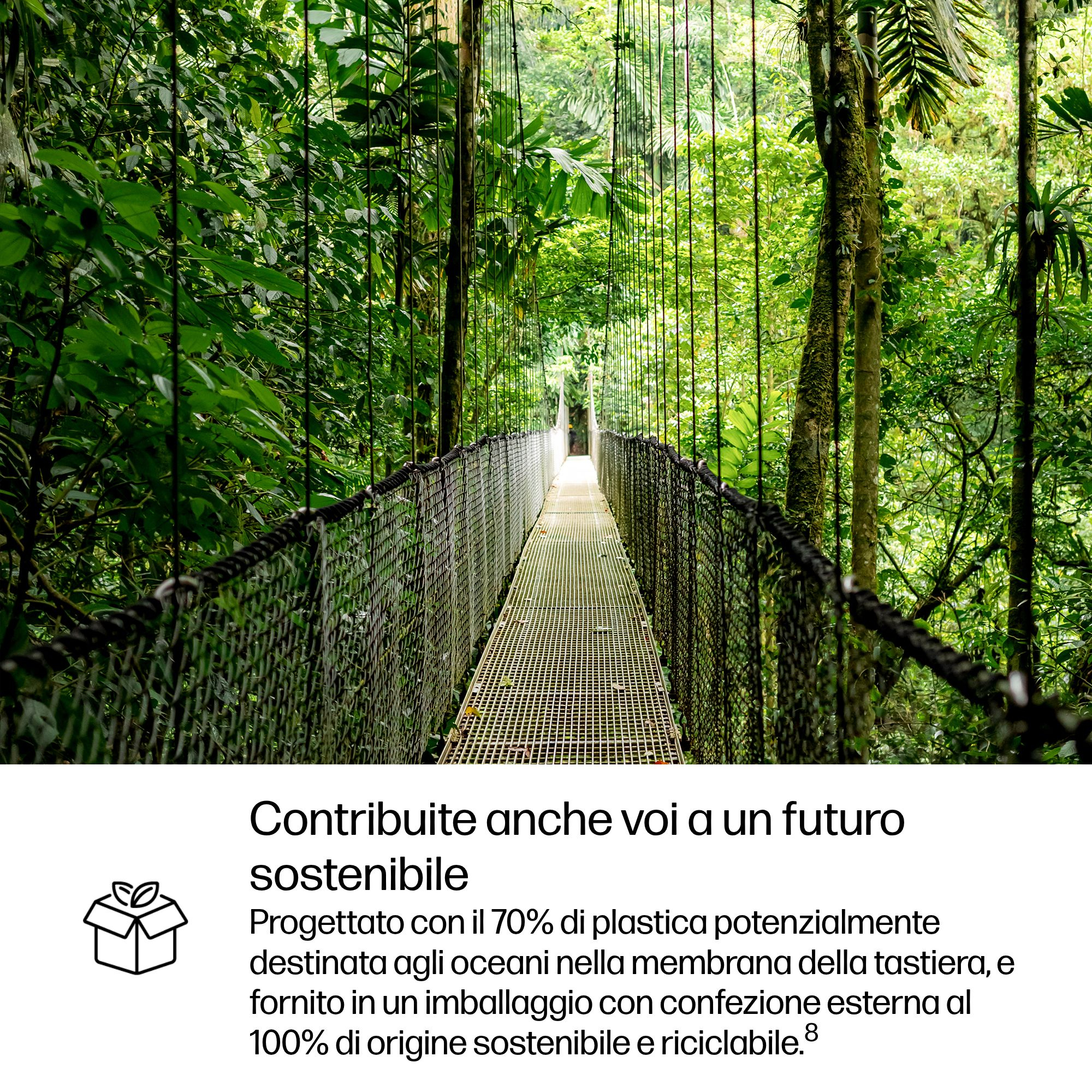 | Tecnologie e materiali sostenibili | Bassa concentrazione di alogeni; Disponibilità di imballaggio sfuso; 50% di plastica riciclata post-consumo; 50% di plastica potenzialmente destinata agli oceani; 80% di metallo riciclato; Il 100% degli imballaggi a base di carta HP proviene da fonti sostenibili riciclate o certificate; Impronta di carbonio del prodotto |