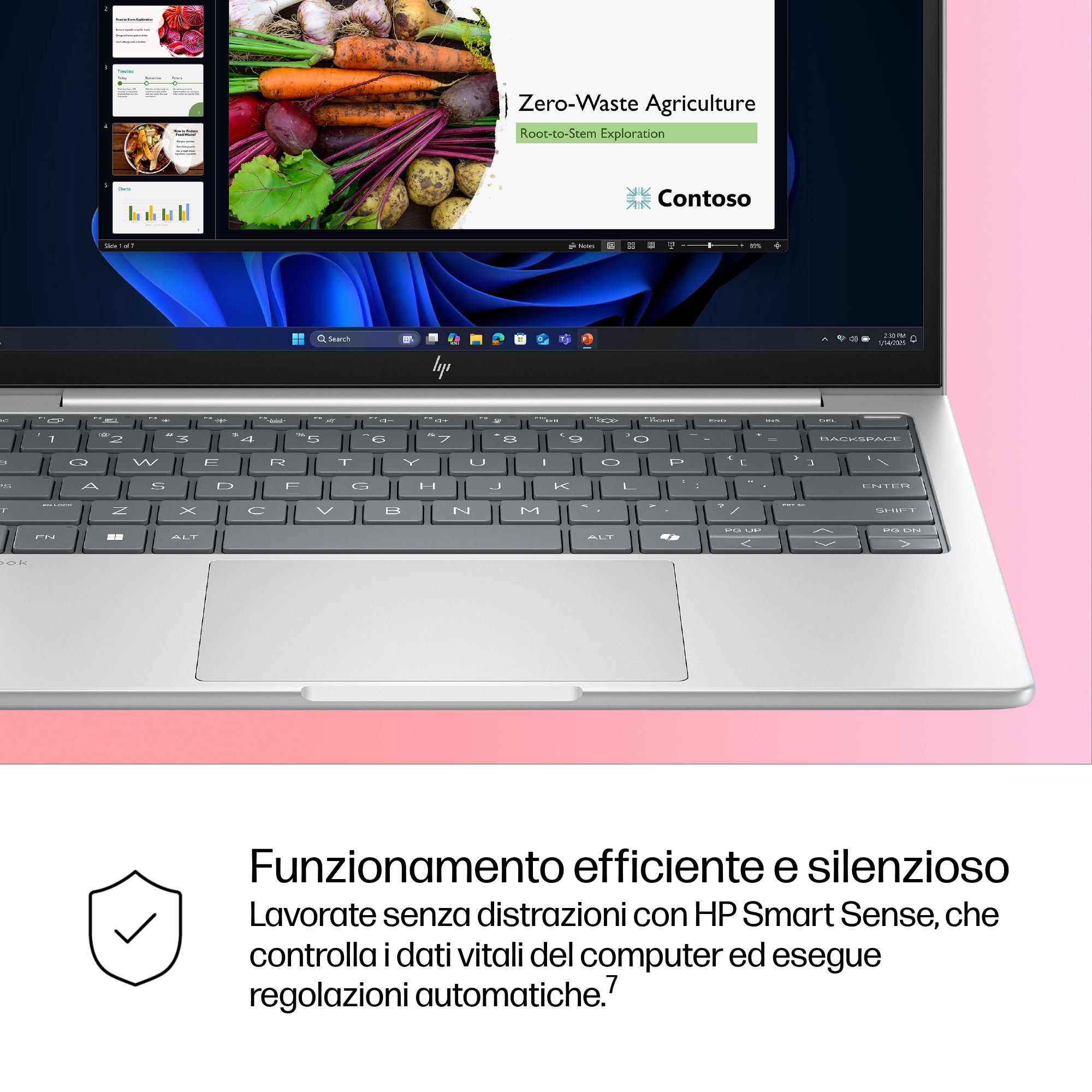 Lavorate ovunque senza rinunciare alle prestazioni con Windows 11 e la tecnologia di collaborazione, sicurezza e connettività di HP. Riassumete e riscrivete i testi, ottenete suggerimenti e organizzate il vostro lavoro con Microsoft Copilot.[5]