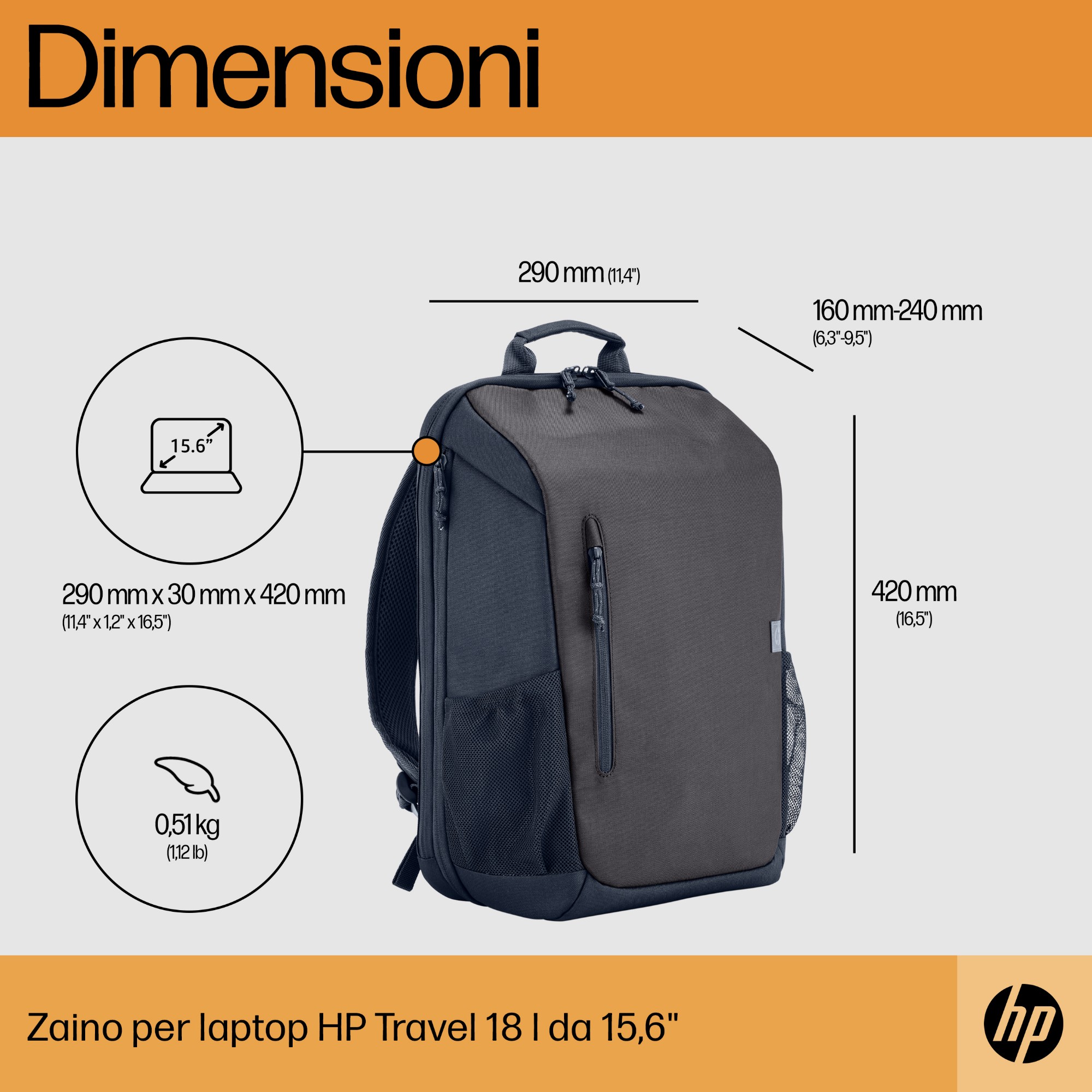 HP Zaino per laptop da 15,6" Travel 18 litri Iron Grey