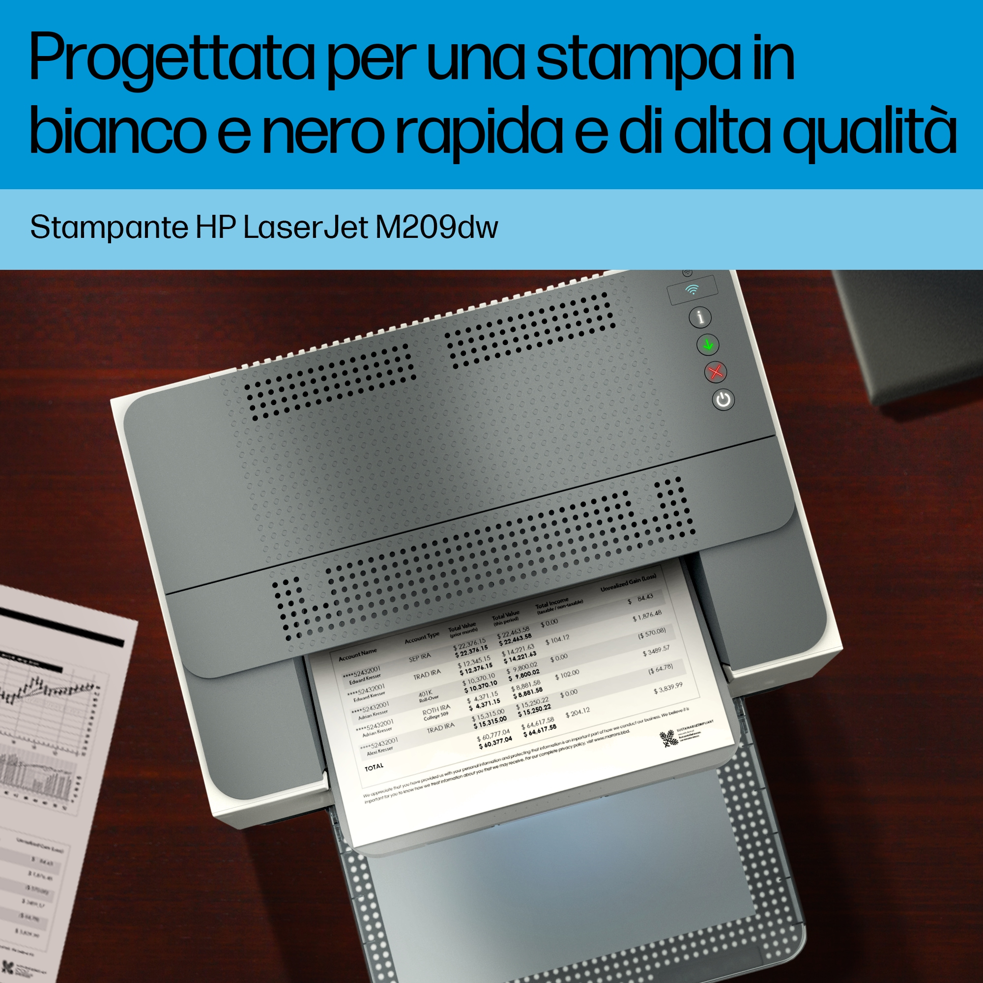 | Contenuto scatola | HP LaserJet Pro M209dw Printer; HP Black LaserJet Toner Cartridge(~700 pages); Dust Cover; Reference Guide, Setup Poster, Warranty Guide & Flyer in some countries; Power cord |