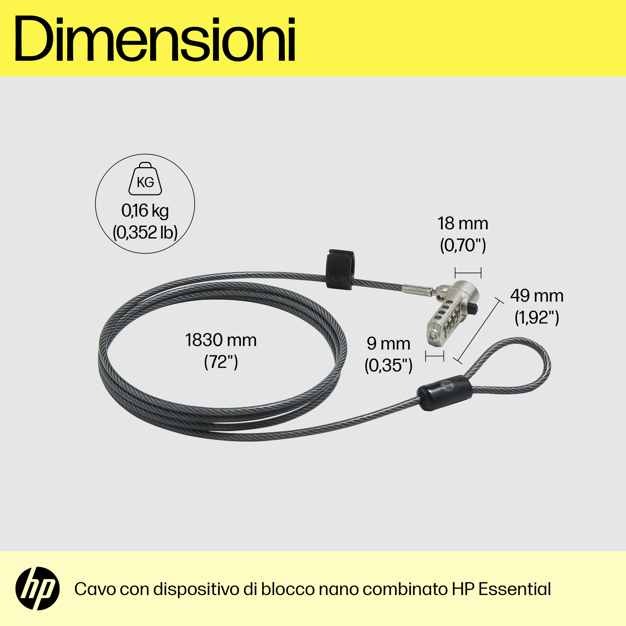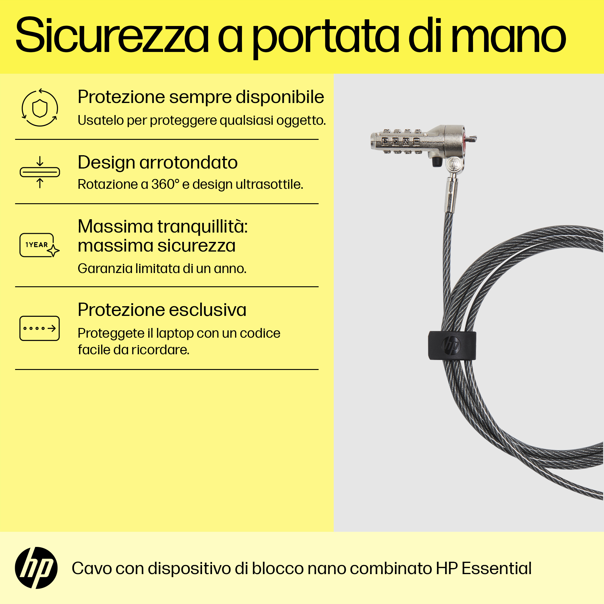 HP Lucchetto a combinazione per cavo nano Essential