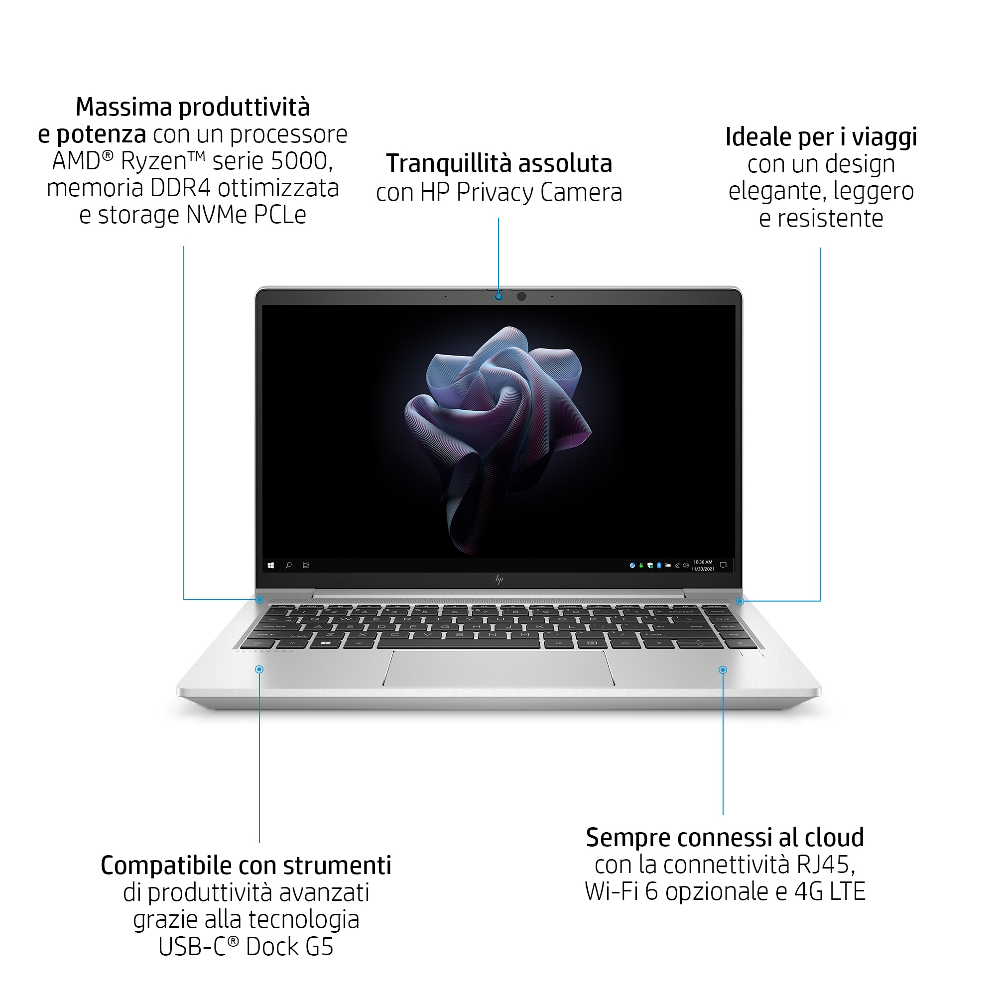 HP Mobile Thin Client Elite mt645 G7 AMD Ryzen™ 5 5625U Thin client portatile 35,6 cm (14") Full HD 16 GB DDR4-SDRAM 256 GB SSD Wi-Fi 6 (802.11ax) Windows 10 IoT Enterprise Argento