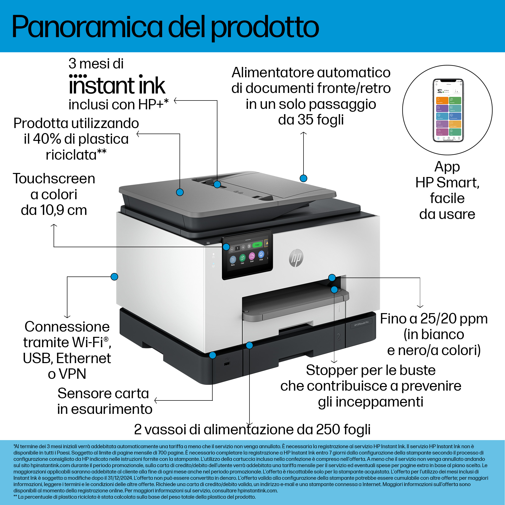 Risparmia fino al 70% sull'inchiostro con Instant Ink. Piani a partire da € 1,79 al mese per stampare 10 pagine.[9,8]