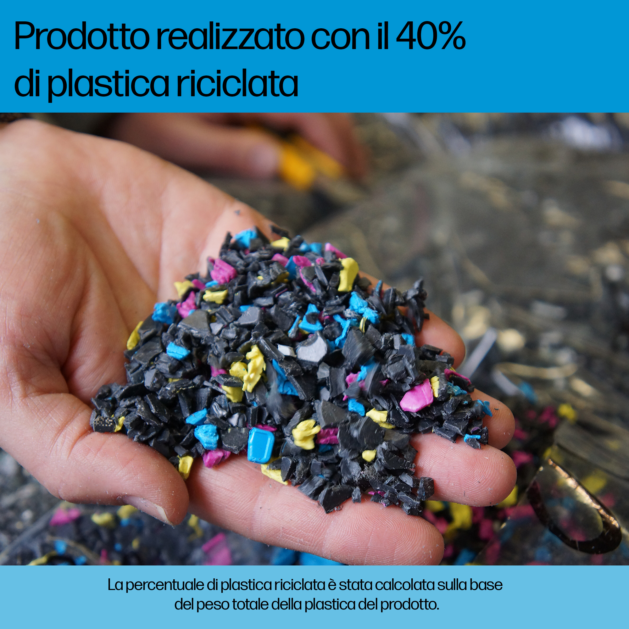 Prodotto realizzato con il 40% di plastica riciclata.<sup>[11]</sup>