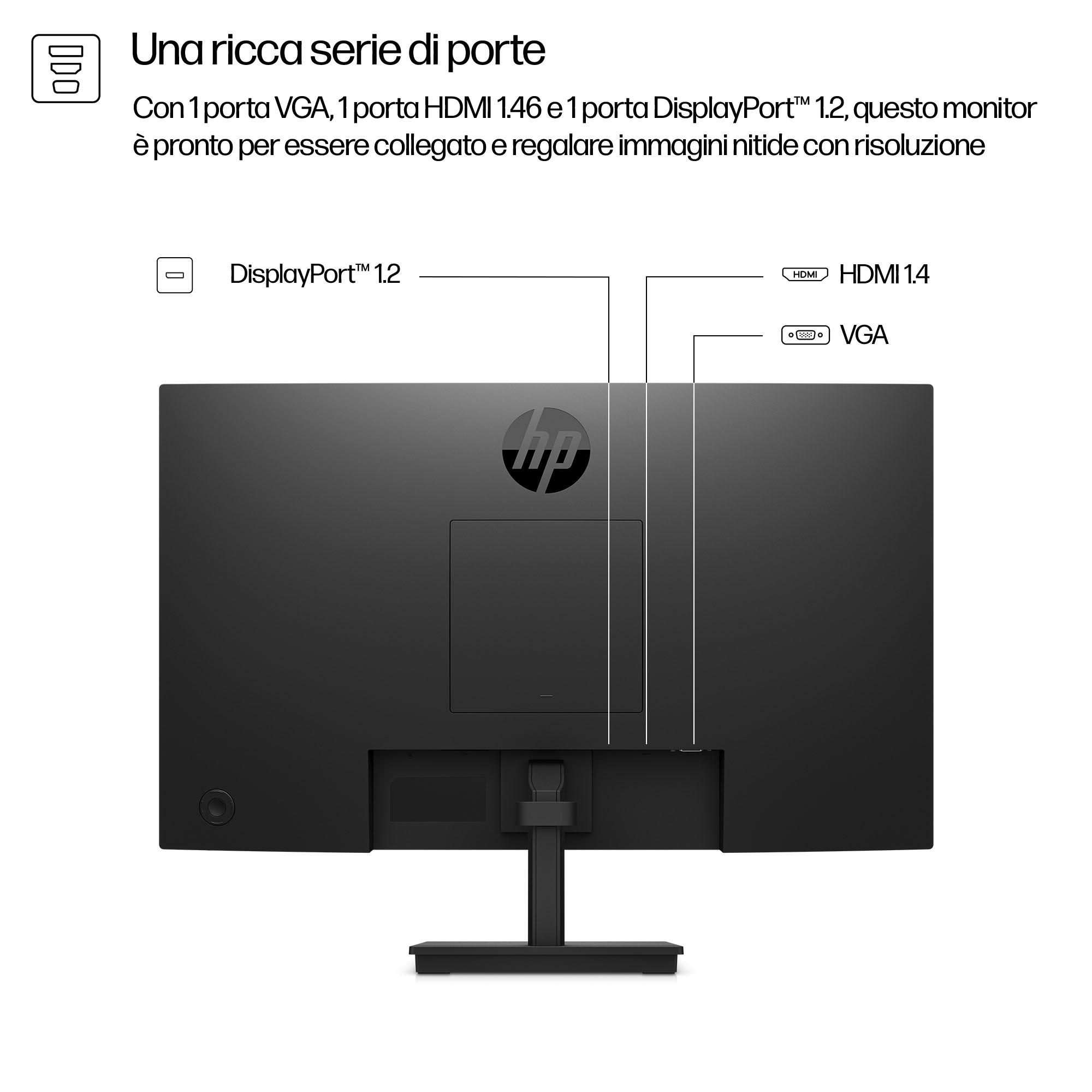 Con 1 porta VGA, 1 porta HDMI 1.4 e 1 porta DP 1.2, questo monitor è pronto per essere collegato e regalarti immagini nitidissime con risoluzione FHD.[4,5]