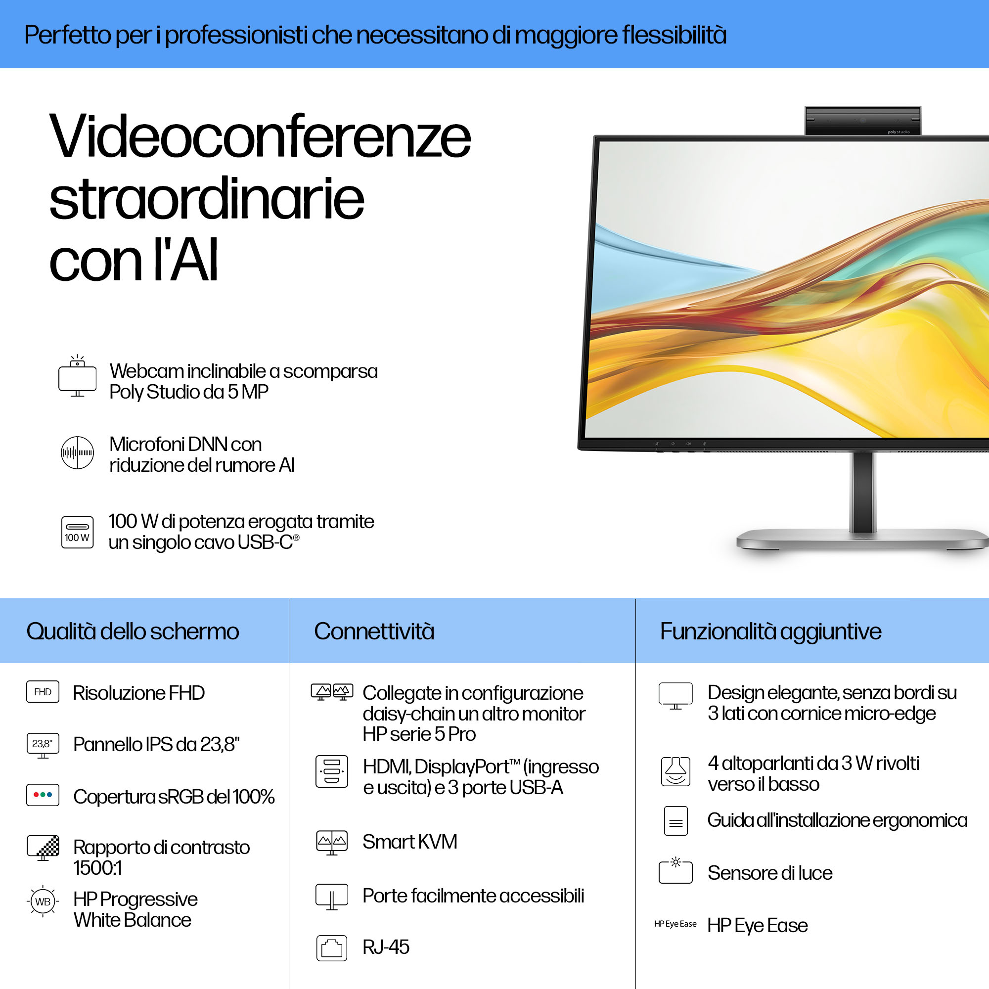 HP Series 5 Pro Monitor per videoconferenze serie 5 Pro FHD USB-C da 23,8" – 524pm