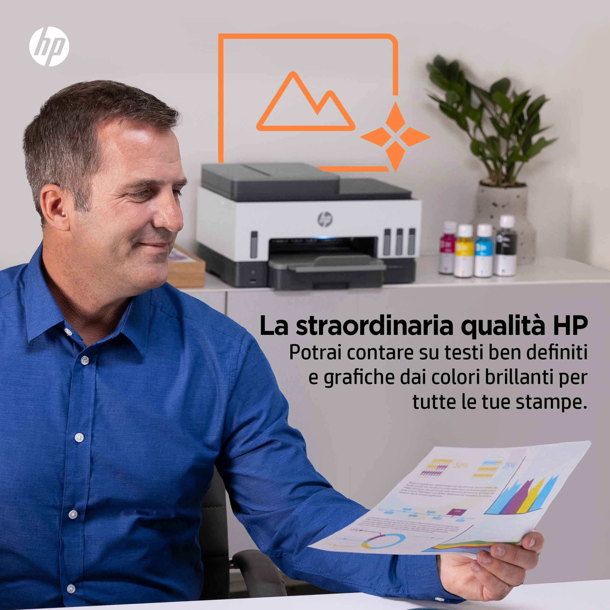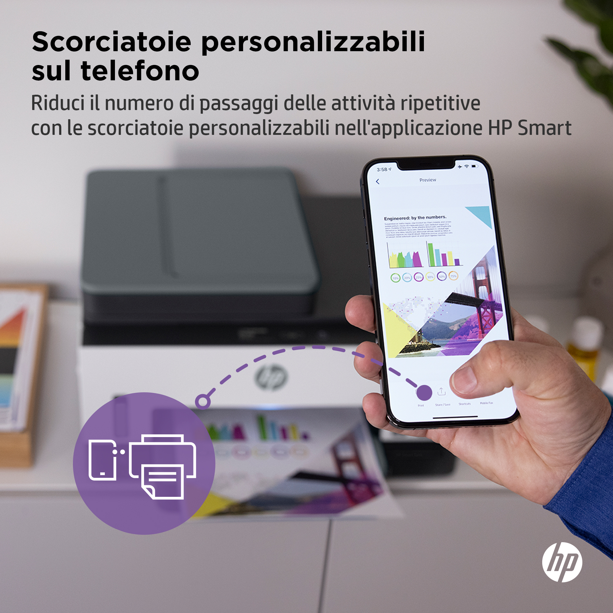Stampa e scansione dallo smartphone con l'applicazione HP Smart.[2] Le funzionalità di scansione avanzata sono disponibili per 12 mesi con HP Smart Tank.[9]