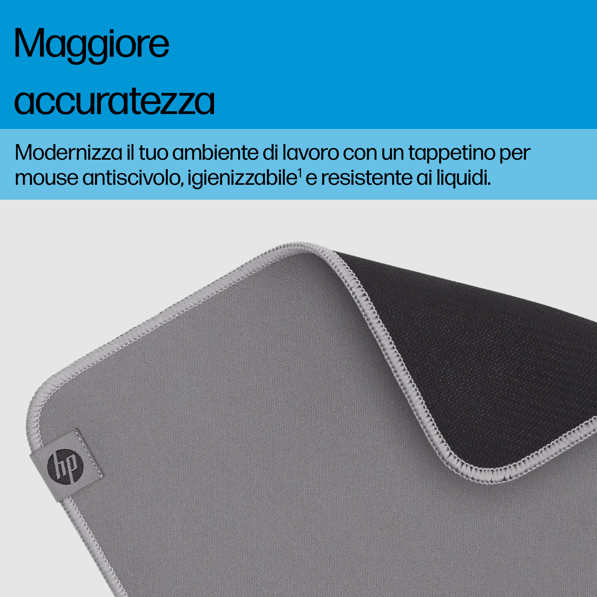 Questo tappetino del mouse è espressamente concepito per durare a lungo. Le cuciture antiusura garantiscono comfort e lunga durata. Inoltre, è sanificabile<sup>[1]</sup> e resistente ai liquidi, per consentirvi di rimuovere all'istante germi o versamenti accidentali. E comunque, per qualsiasi evenienza, è coperto da 2 anni di garanzia HP.