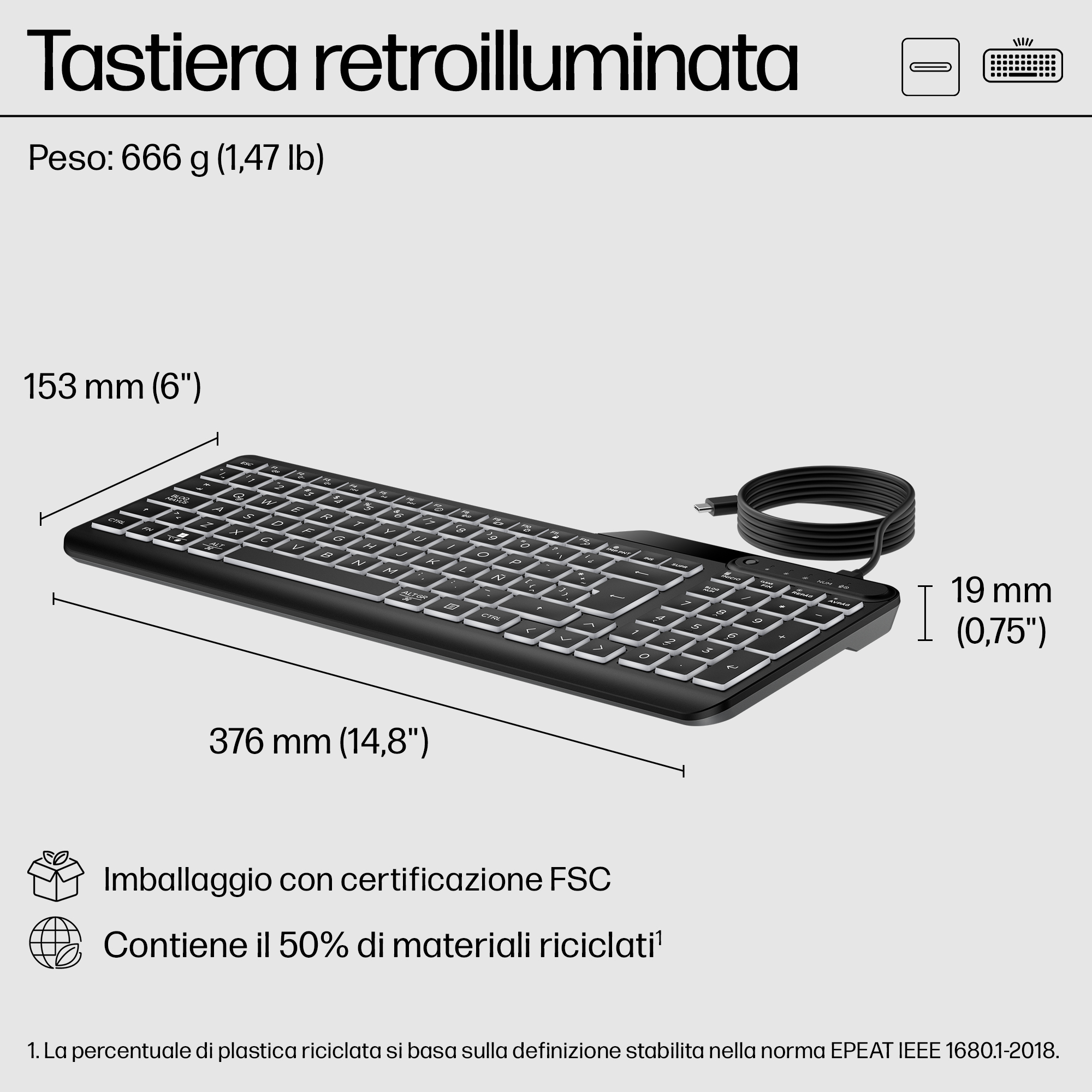 HP Tastiera cablata retroilluminata multidispositivo 405