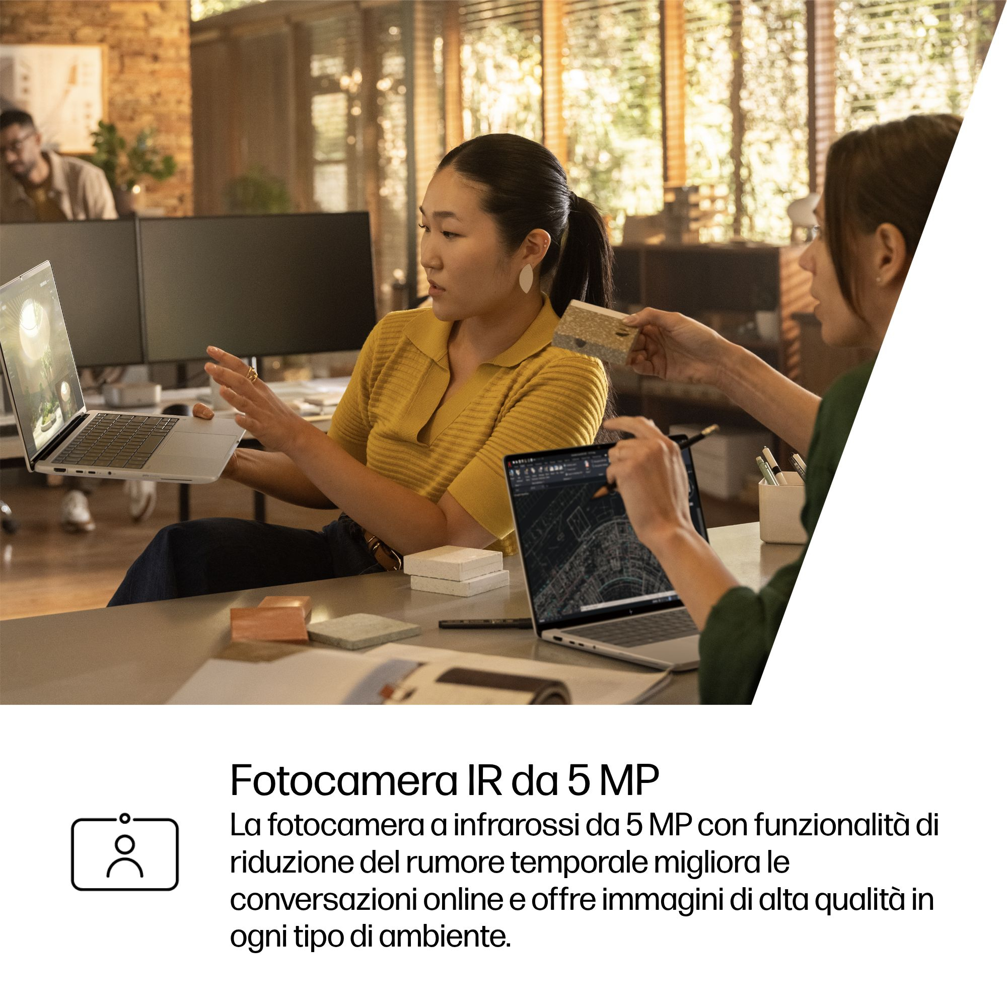 Lavorate ovunque senza rinunciare alle prestazioni con Windows 11 e la tecnologia di collaborazione, sicurezza e connettività di HP. Riassumete e riscrivete i testi, ottenete suggerimenti e organizzate il vostro lavoro con Microsoft Copilot.[6]