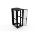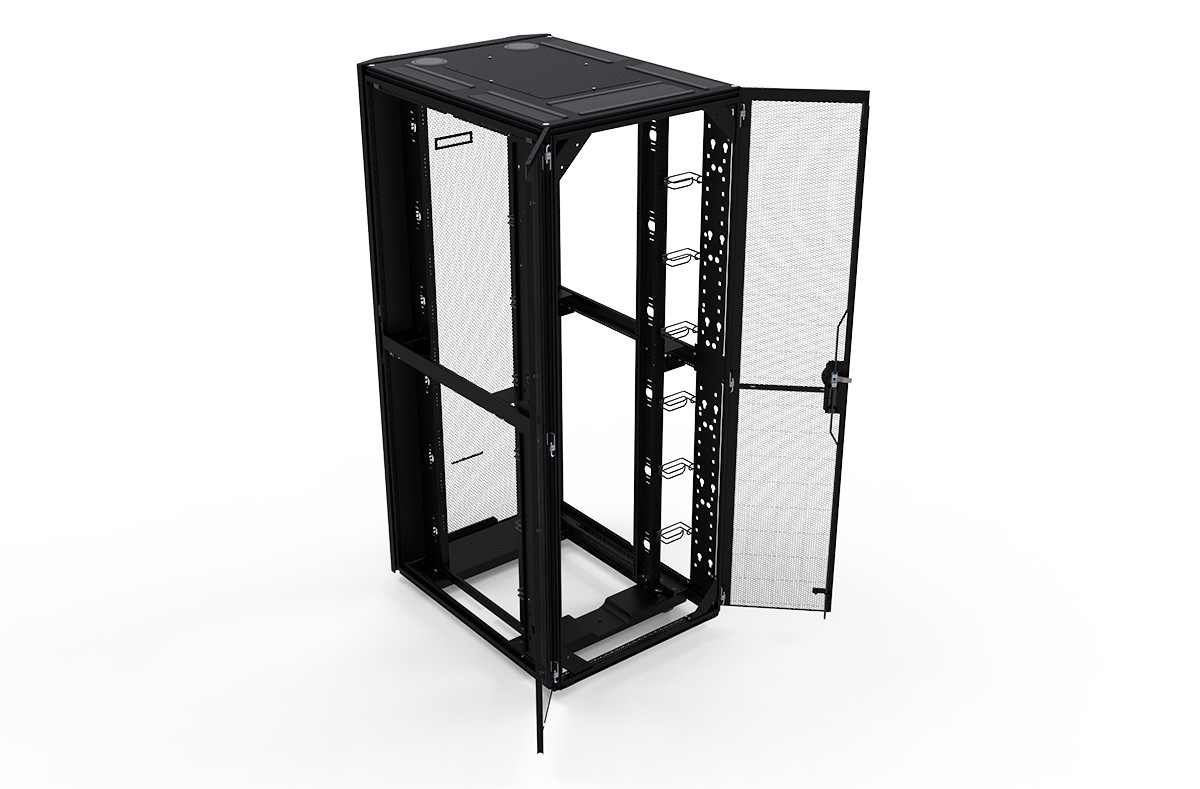 I rack di rete includono guide EIA verticali riposizionate per adeguarsi al cablaggio fronte-retro e ulteriori slot di accesso ai cavi ricoperti di setole per evitare la miscelazione dell'aria e consentire il passaggio dei cavi.