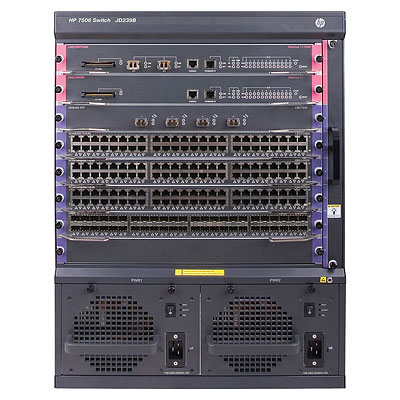 HP 7506 Switch with 2 48-port Gig-T PoE+ Modules and 384Gbps MPU with 2 XFP ports