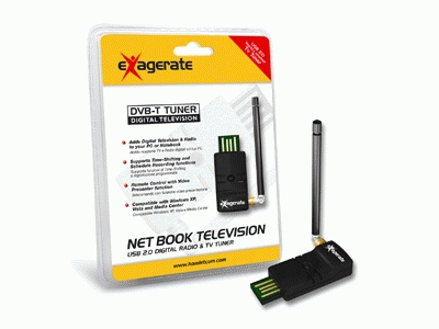 Exagerate Net Book Television è un sintonizzatore USB 2.0 per la ricezione di TV e radio digitali. Permette di guardare e registrare programmi TV, utilizzare la funzione TimeShifting ed editare i video con il software incluso.