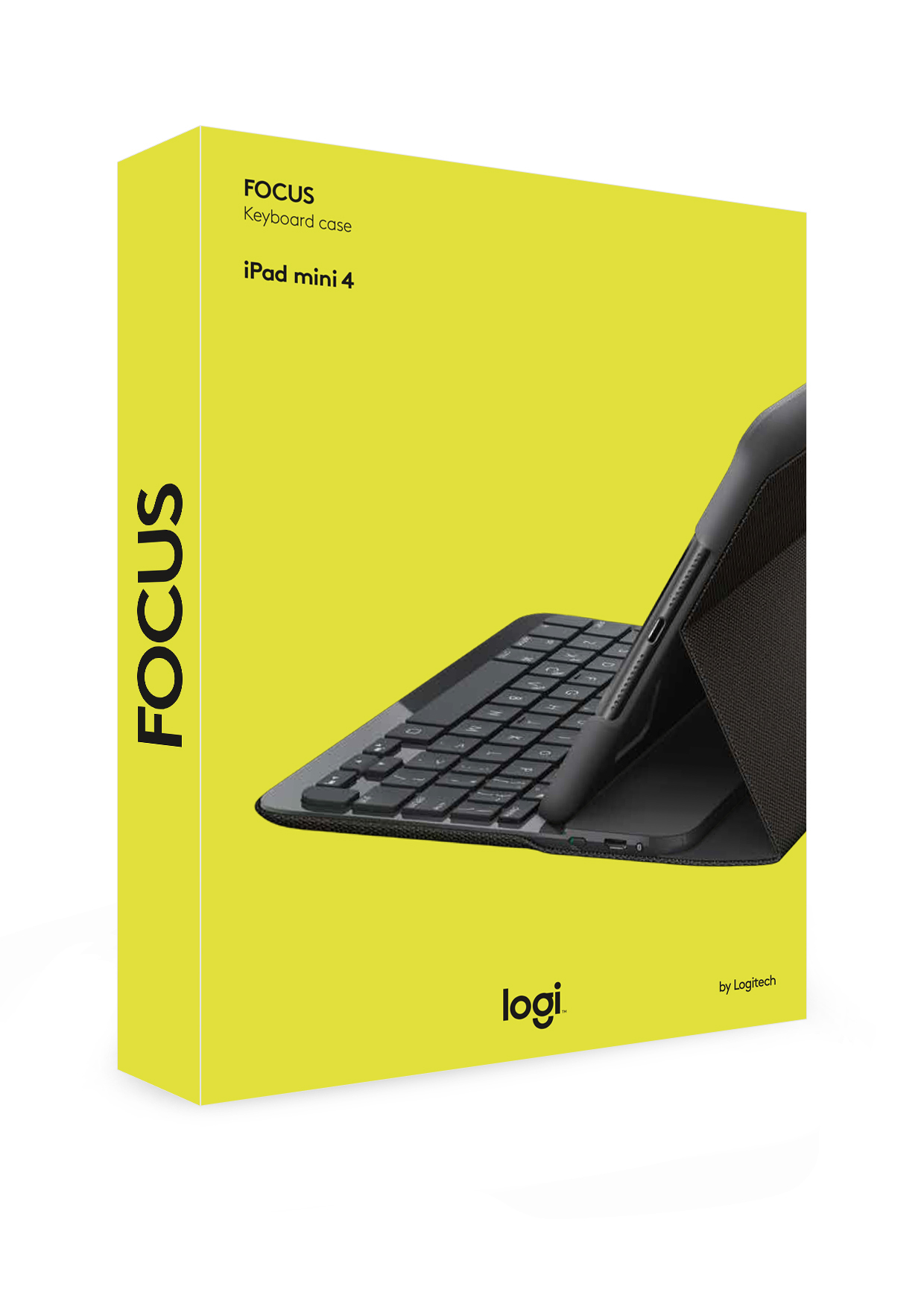 Logitech Focus. Tipologia custodia: Custodia a libro, Compatibilità marca: Apple, Compatibilità: iPad mini™ 4, Capienza massima dimensioni dello schermo: 20,1 cm (7.9"). Peso: 257 g