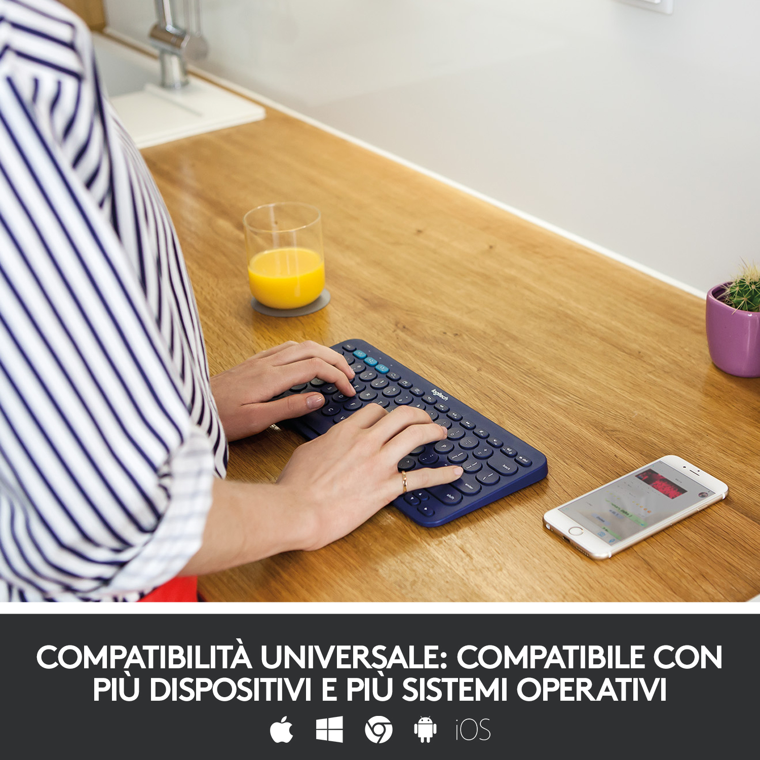 La tastiera Bluetooth® multidispositivo Logitech® K380 rende qualsiasi spazio minimalista, moderno e multidispositivo permettendoti di digitare sul tuo smartphone, tablet e altro ancora.*