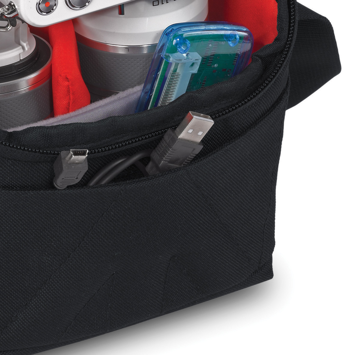 L'Amica-10 è una borsa a spalla pratica, divertente e protettiva capace di contenere una mirrorless con lente montata, più una lente pancake aggiuntiva e piccoli accessori.