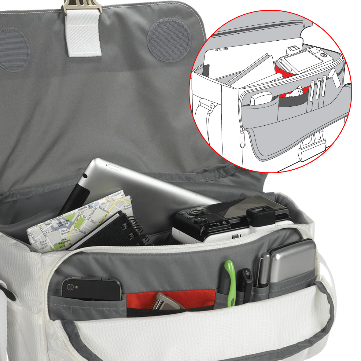 Unica I messanger è la compagna ideale per il trasporto quotidiano del tuo corredo fotografico, del tuo ipad or Notebook e dei tuoi effetti personali. Consente di accedere velocemente attraverso l'apertura superiore alla tua Mirrorless con obiettivo incorporato, al tuo tuo notebook fino a 11'' /ipad ed effetti personali.
