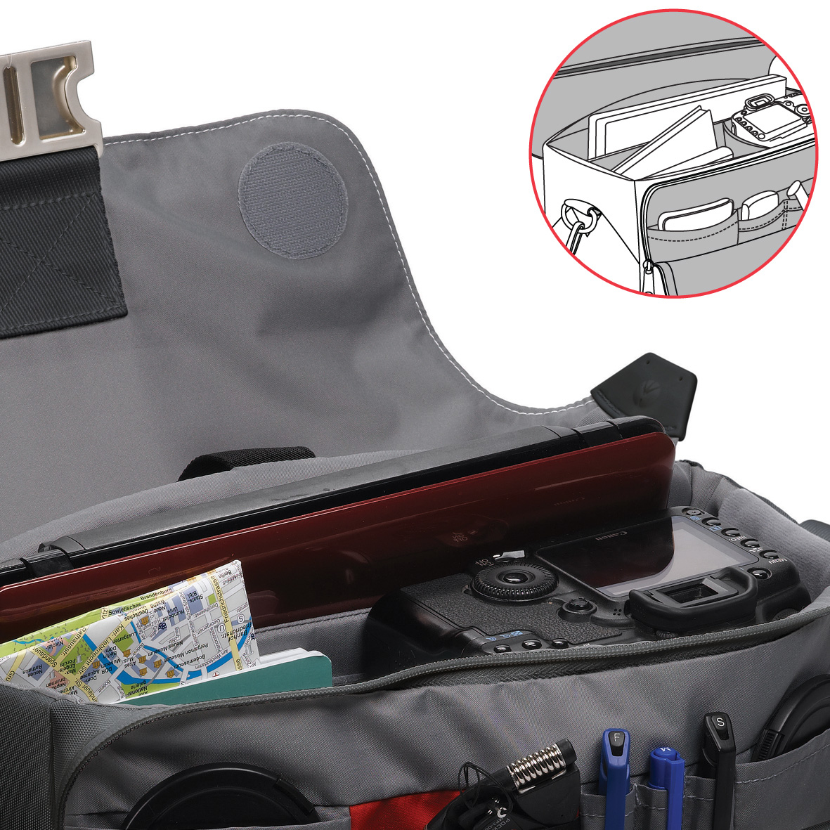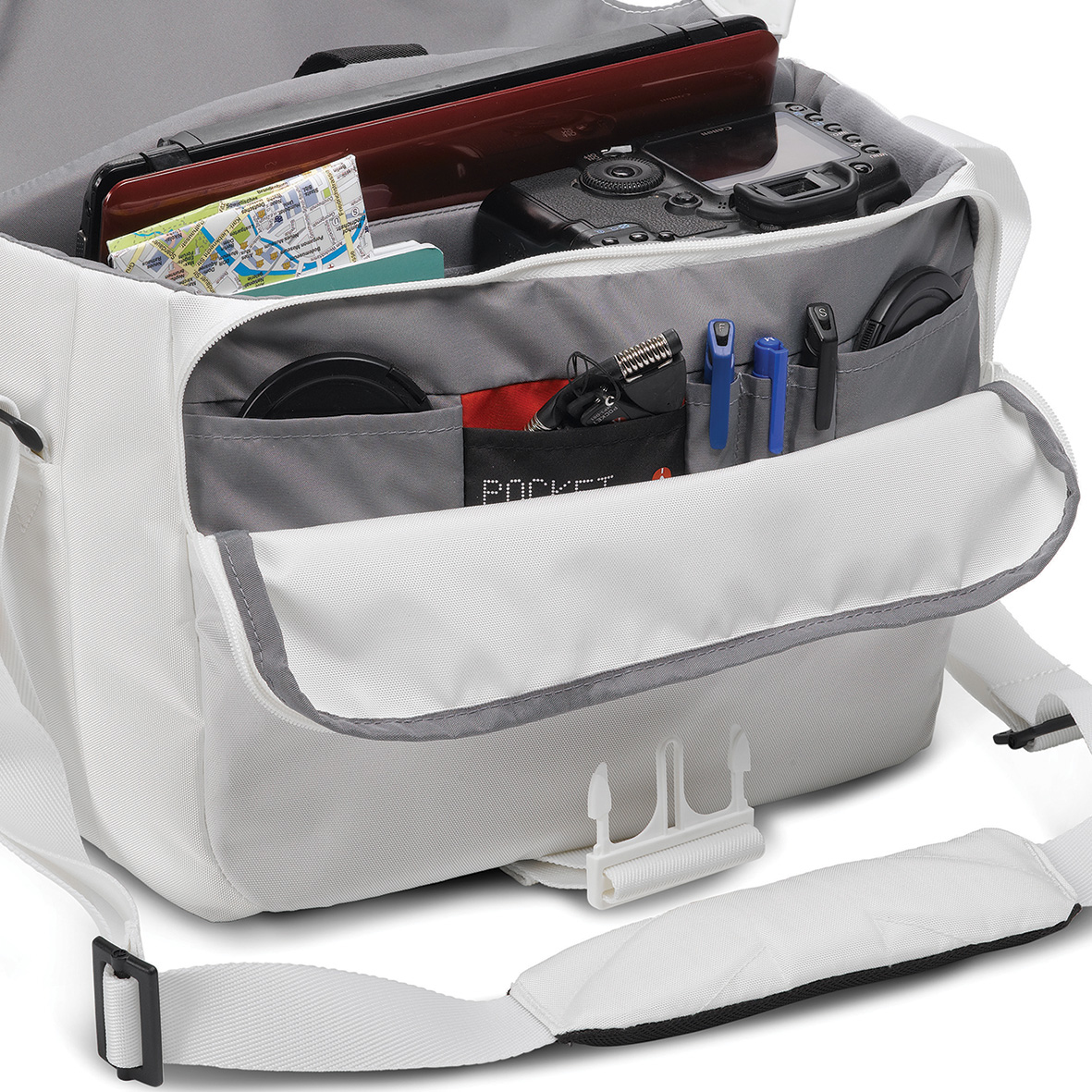 La borsa messenger Unica III è la soluzione perfetta per trasportare effetti personali, computer portatile ed attrezzatura fotografica. Trasporta una fotocamera e pc portatile fino a 13”. Rispetto alle misure V e VII, Unica III non ha la tasca inferiore dedicata al treppiedi, creando così un compartimento più ampio per dare maggiore spazio anche agli effetti personali.