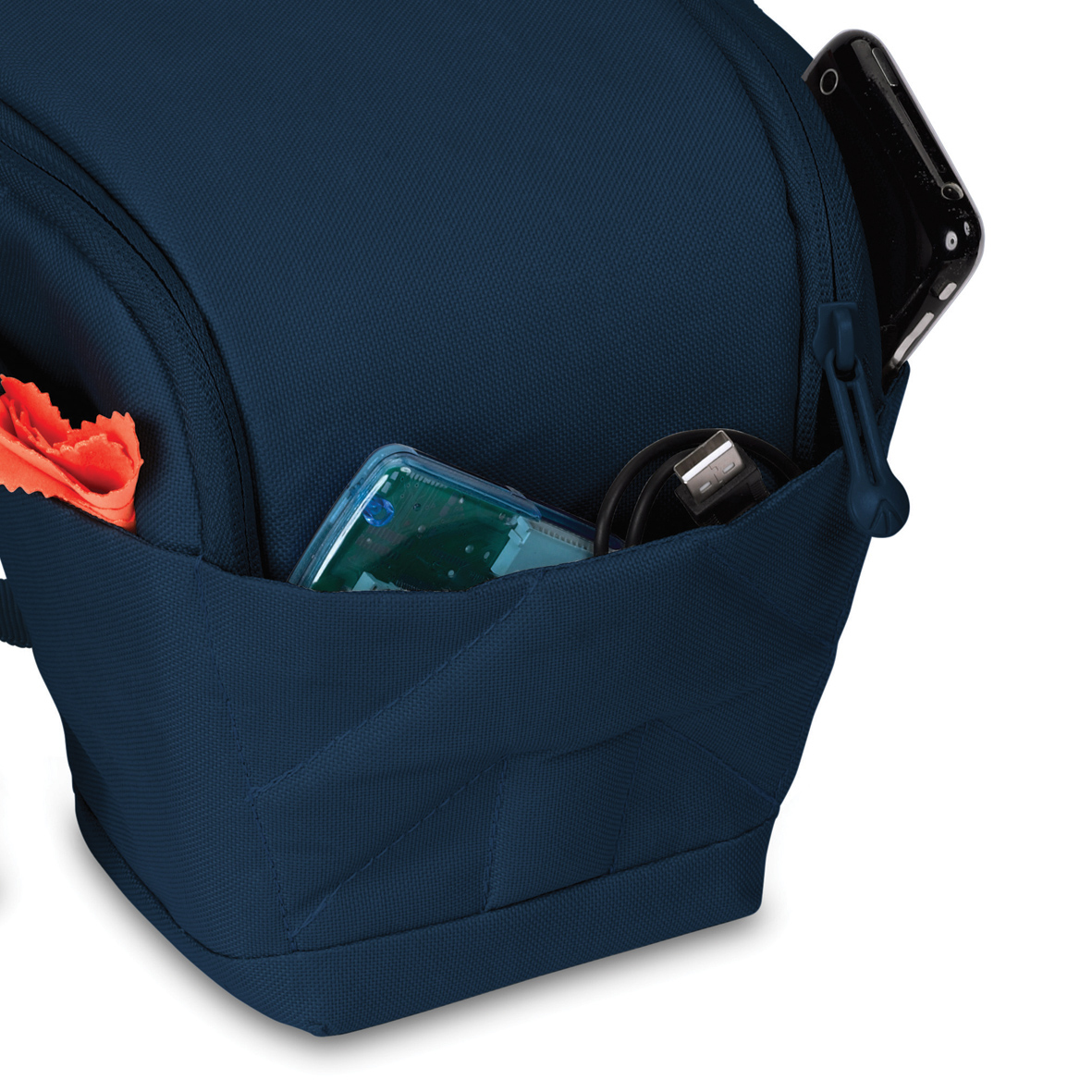 La Vivace-20 è una fondina pratica, divertente e protettiva capace di contenere una reflex con lente montata (x es. un 18-55mm) e piccoli accessori aggiuntivi.