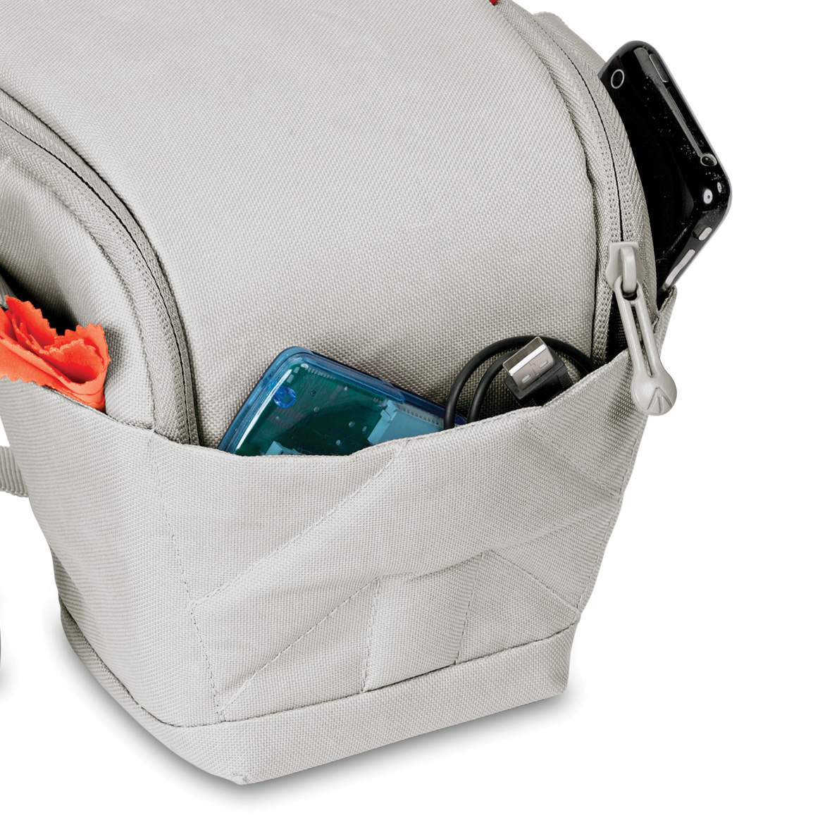 La Vivace-30 è una fondina pratica, divertente e protettiva capace di contenere una reflex con lente zoom montata (x es. un 18-200mm) e piccoli accessori aggiuntivi.