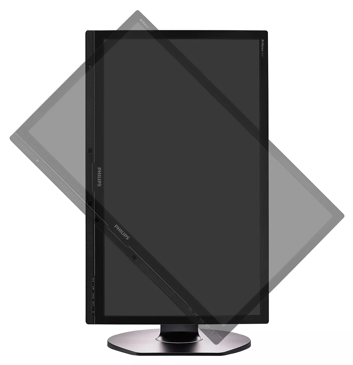 Il sistema SmartErgoBase avanzato consente di abbassare il monitor Philips quasi all'altezza del tavolo per garantire un comodo angolo di visuale. L'altezza ridotta con la cornice quasi al livello del tavolo è il modo ideale di utilizzare il PC per chi indossa occhiali con lenti bifocali, trifocali o progressive. Inoltre, permette agli utenti di altezze decisamente diverse di guardare il monitor con il perfetto angolo visivo e con impostazioni di altezza più comode, riducendo l'affaticamento degli occhi.