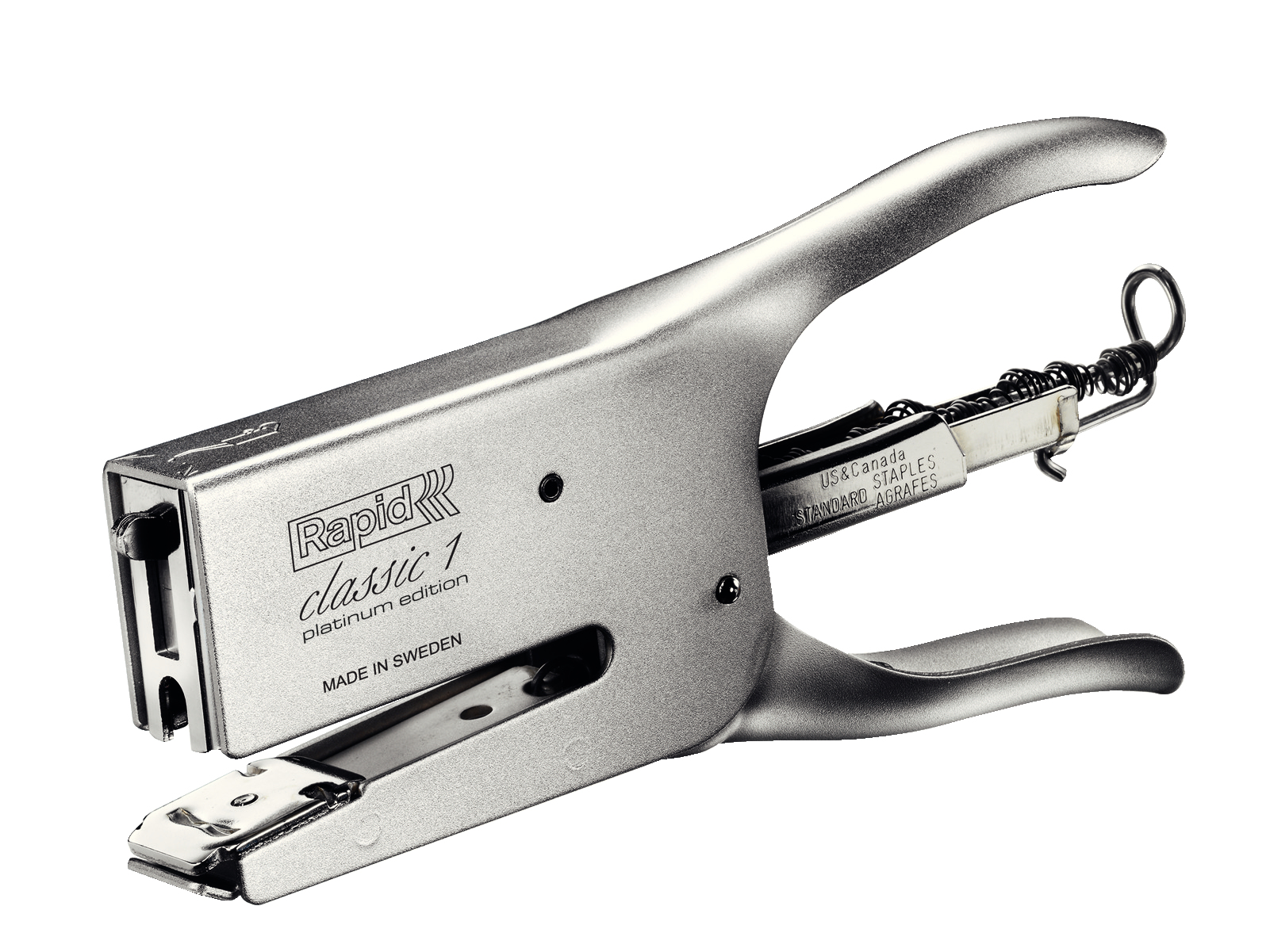 Il famoso design classico unito all'esclusiva finitura "Platinum" cromata opaca con ribattitore adattabile per punto chiuso e aperto. Nessuna impronta e meno scivolosa grazie alla finitura cromata. Perfette per uffici postali, piccoli e grandi negozi, casa e ufficio.