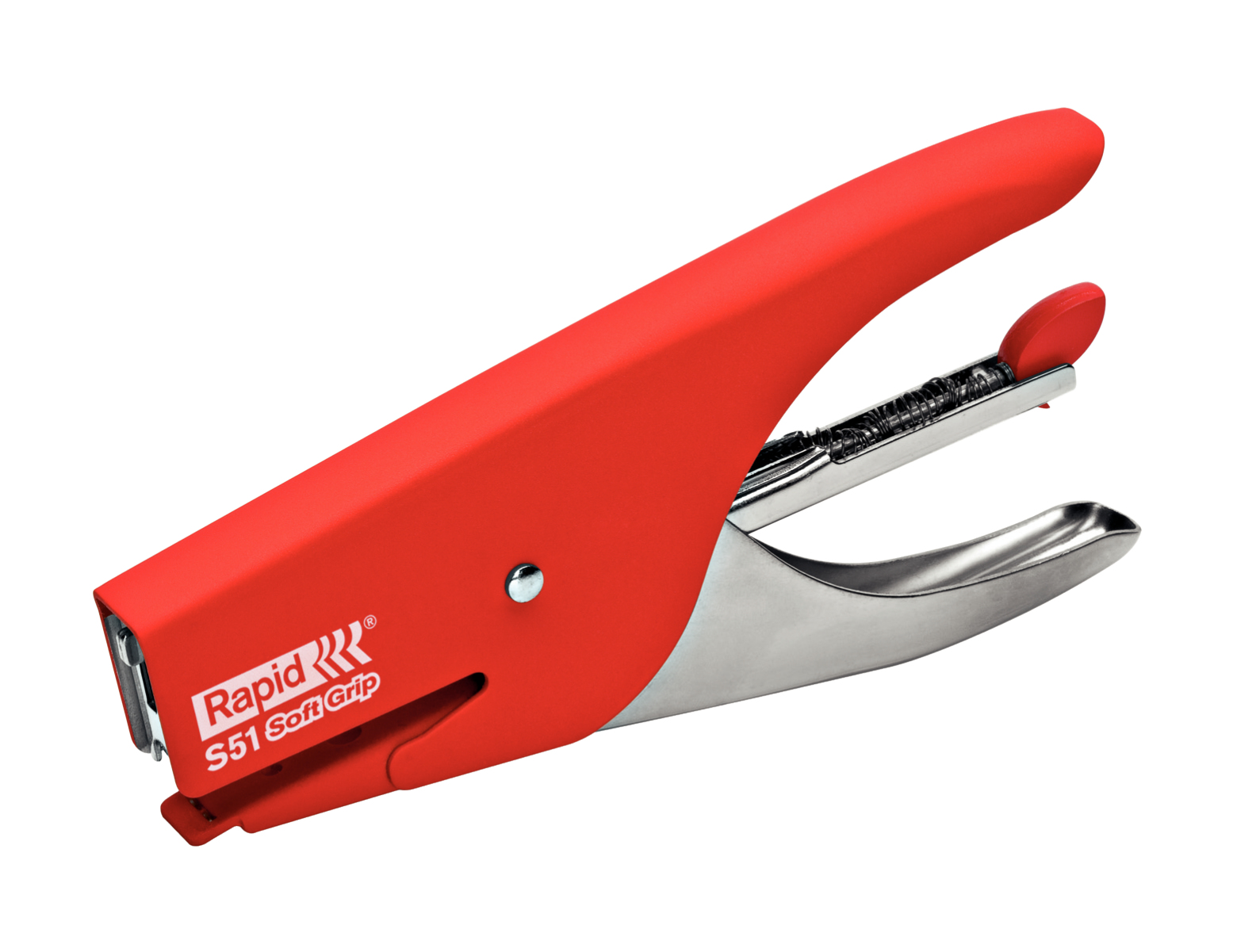 Cucitrice a pinza, maneggevole per la casa e per l'ufficio. Nuova versione migliorata della Rapid S51. Impugnatura ergonomica totalmente in acciaio e finitura con speciale "vernice gommata" che la rende piacevole al tatto. - Cuce fino a 15 fogli - Capacità di carica 200 punti - Profondità di cucitura 42 mm - Utilizza punti 21/4 (passo 6) - Cuce a punto chiuso.