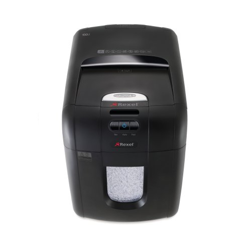 Questo distruggidocumenti avanzato ad alimentazione automatica con taglio micro garantisce il massimo livello di sicurezza, stracciando i documenti confidenziali in piccoli frammenti dalle dimensioni micro. Con il distruggidocumenti Auto+ 100M, non occorre stare in piedi per inserire i fogli né rimuovere punti metallici o graffette. Dispone di un'alimentazione automatica e di un cestino da 26 litri che consentono di caricare fino a 100 fogli A4 e di andare a occuparsi di altro.
