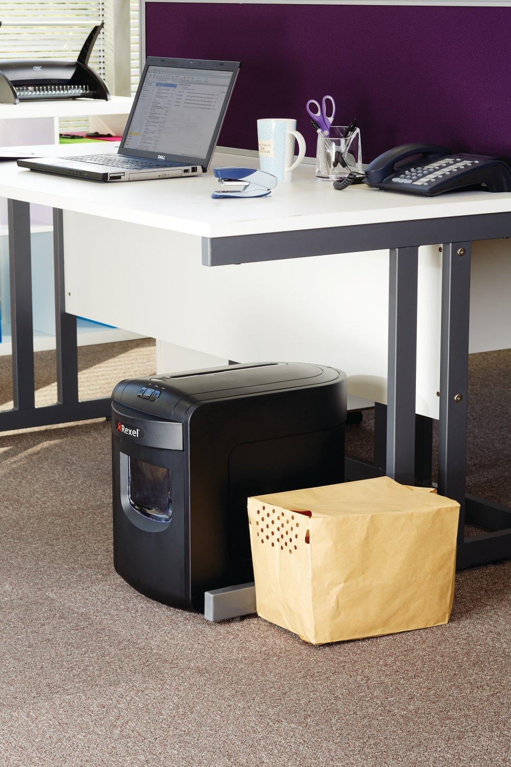 Il distruggidocumenti Mercury, ideale per aziende, fornisce un buon livello di sicurezza per ridurre documenti riservati in piccoli frammenti (livello di sicurezza P-4). È dotato di tecnologia anti-inceppamento a rilevamento continuo e distrugge fino a 13 fogli per volta. Dispone di un cestino da 23 litri per un massimo di 210 fogli distrutti da raccogliere in comodi sacchi riciclabili.
