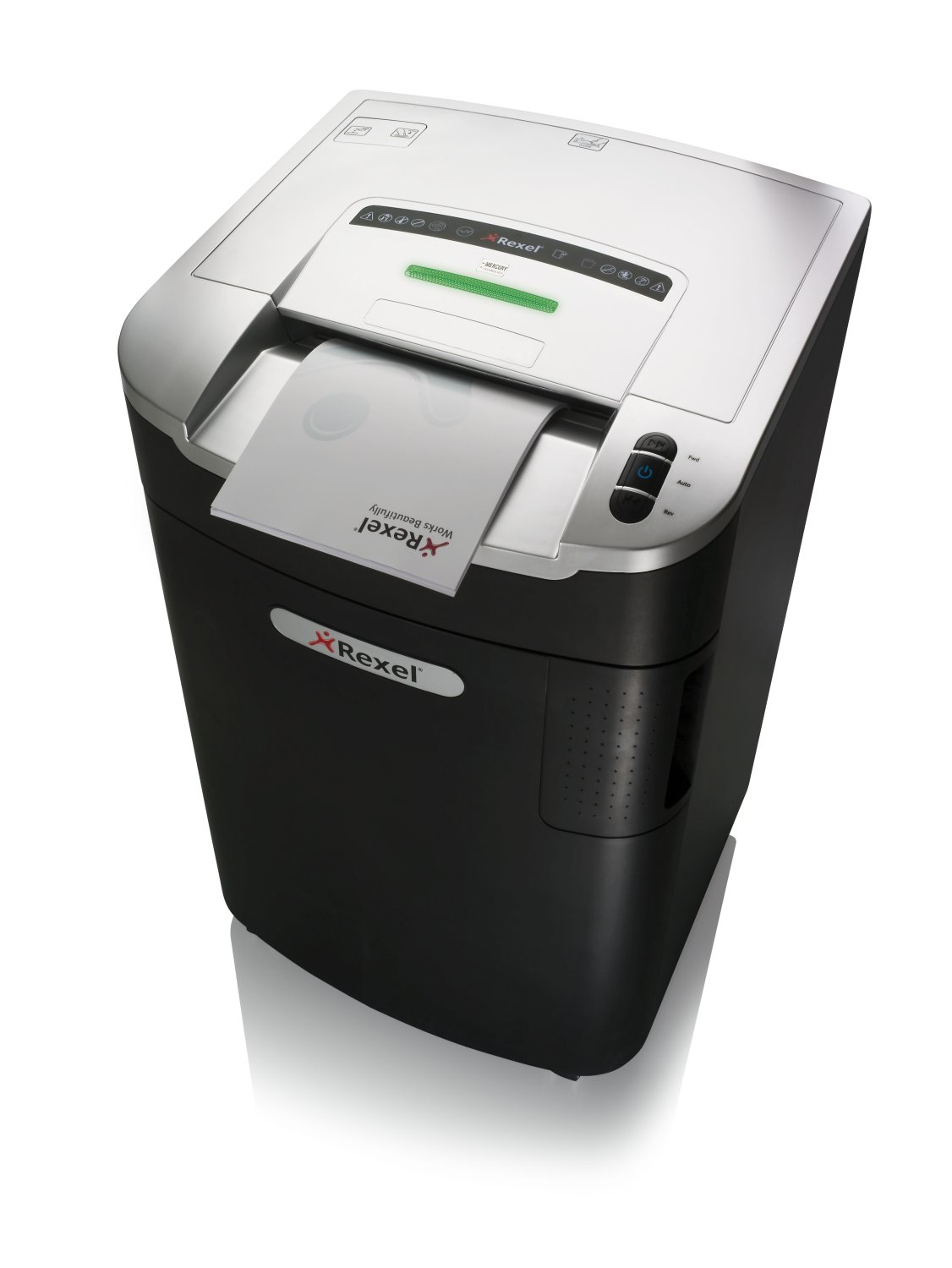 Ideale per uffici di grandi dimensioni con volumi elevati di utilizzo, il distruggidocumenti avanzato Mercury offre un taglio micro e un elevato livello di sicurezza per documenti altamente riservati. Riduce un documento A4 in 2188 pezzi. È dotato di tecnologia anti-inceppamento a rilevamento continuo, si occupa di fino a 11 fogli per volta e dispone di sacchi riciclabili e facili da svuotare nel telaio estraibile, capaci di contenere fino a 1250 fogli distrutti.