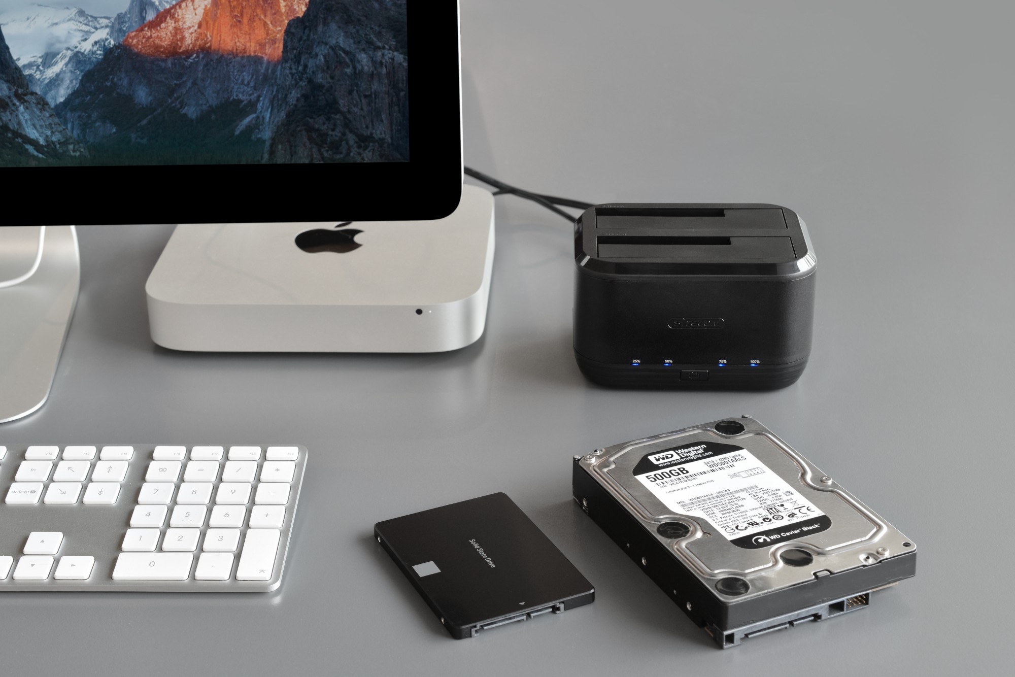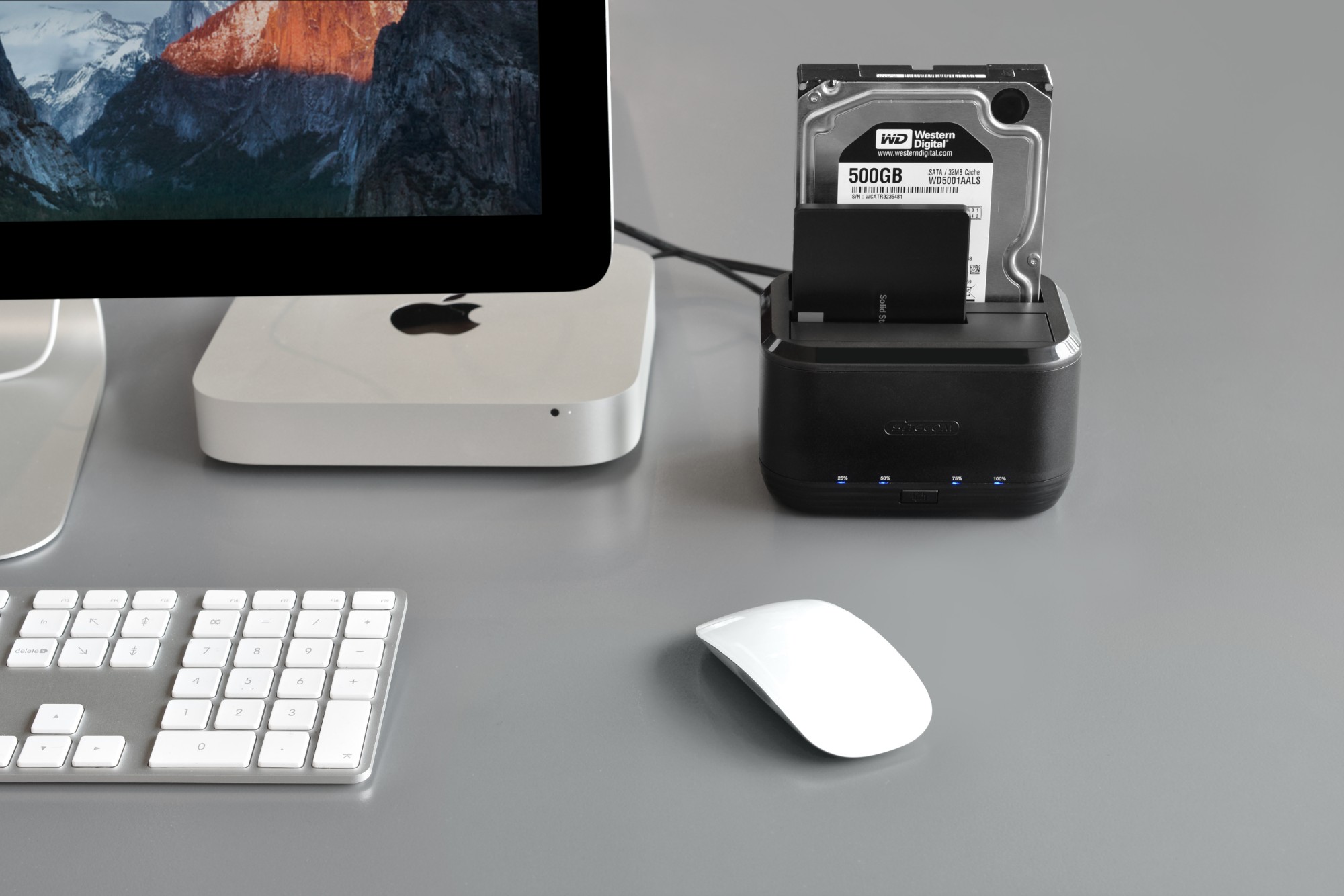 MD-394 USB 3.0 HDD/SSD Docking Station SATA 2.5"/3.5" di Sitecom permette di leggere e scrivere sui dischi rigidi SATA da 2,5" e 3,5". È compatibile con i dischi HDD (Hard Disk Drives) e SSD (Solid-State Drives) e permette di ampliare con facilità la capacità di archiviazione del Chromebook, Ultrabook, MacBook o del normale notebook. Con la docking station puoi clonare i dischi rigidi premendo un pulsante. Basta inserire il disco rigido con i dati in uno slot e un disco rigido vuoto di dimensioni uguali o maggiori nell'altro slot: i dati vengono duplicati automaticamente.